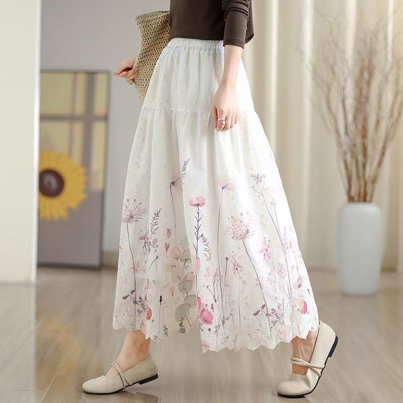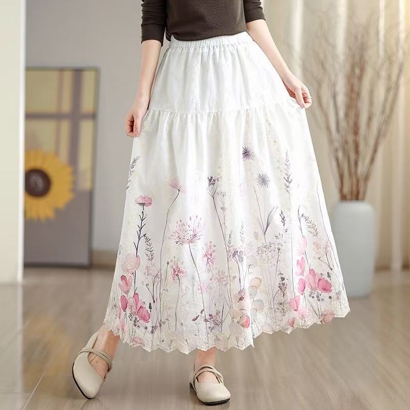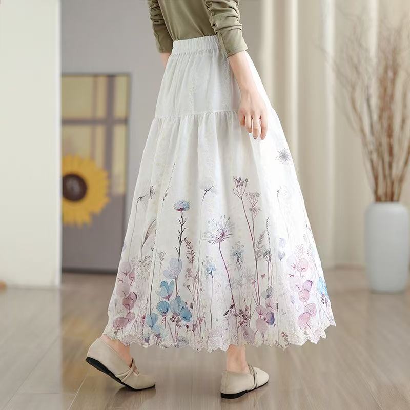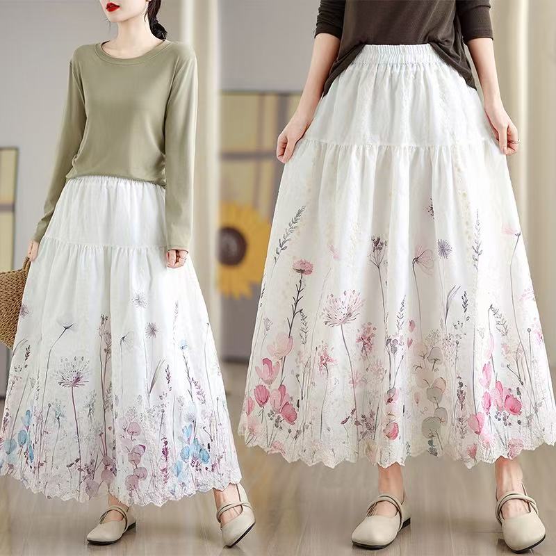 FA53419# 晕染刺绣碎花半身裙女春季新款温柔风高腰显瘦蛋糕裙A字长裙 服裝批發女裝批發服飾貨源