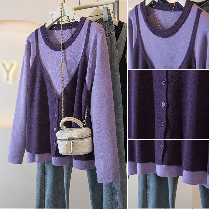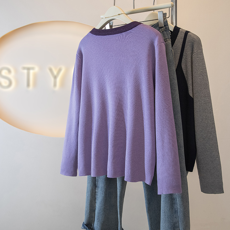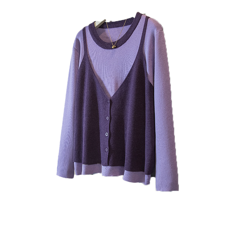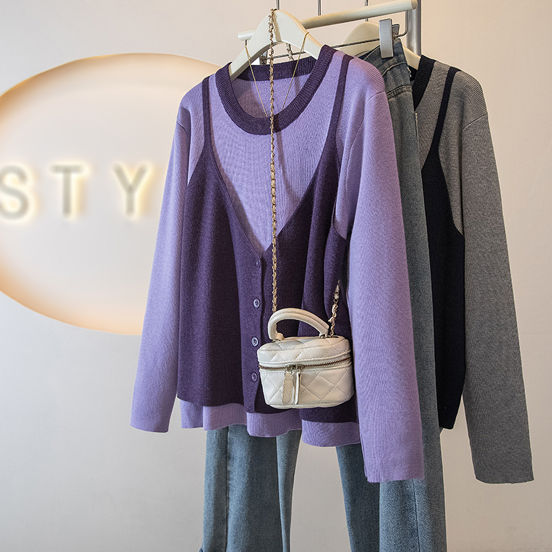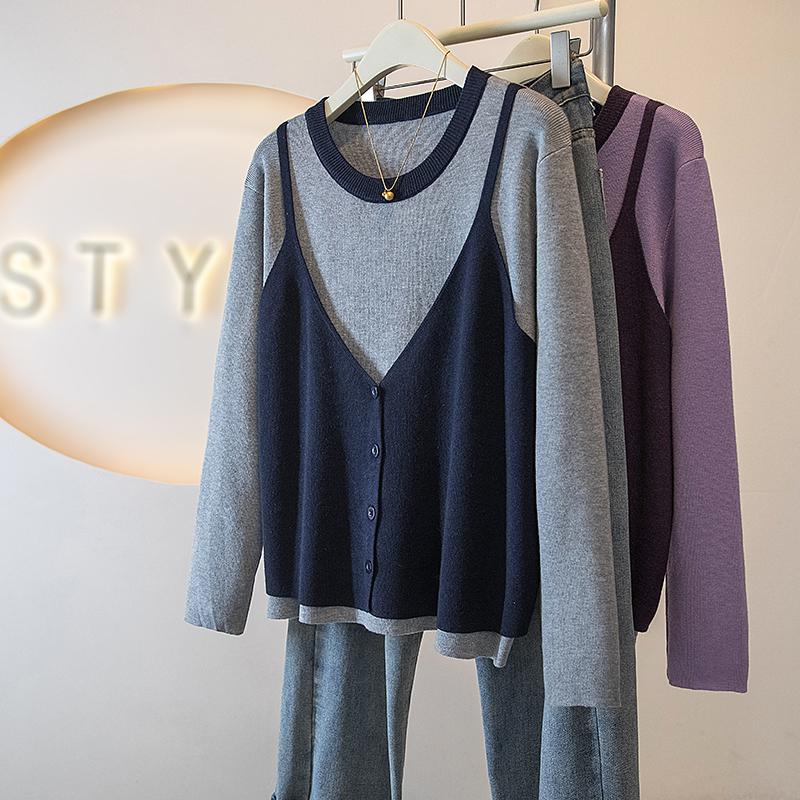 FA53469# 大码女装新款冬季韩版时尚高级假两件拼接宽松百搭针织上衣 服裝批發女裝批發服飾貨源