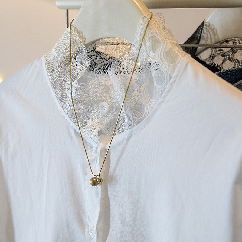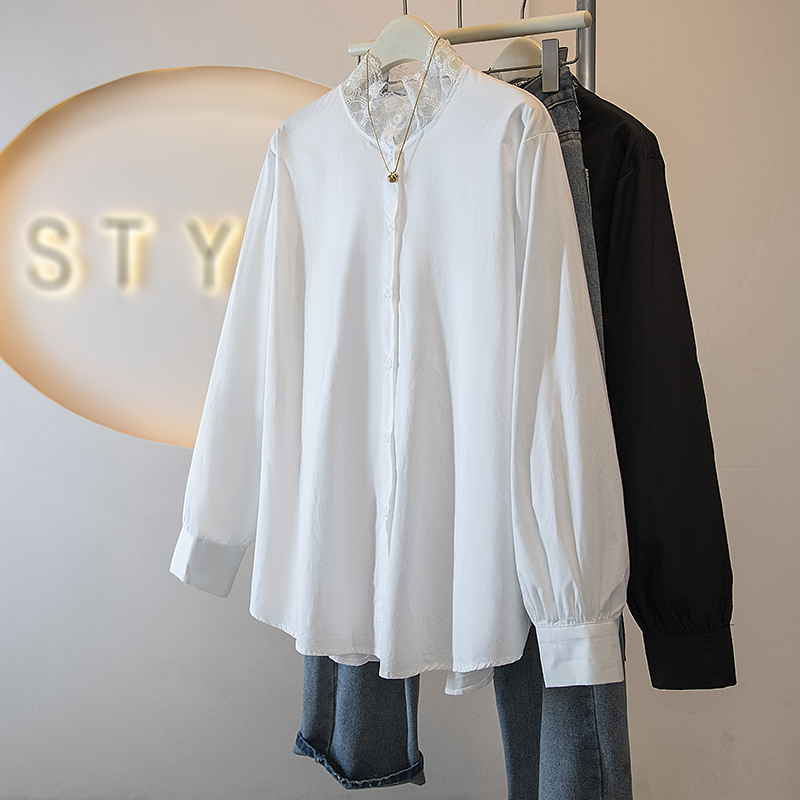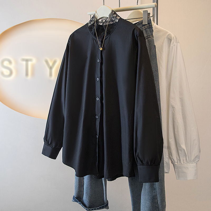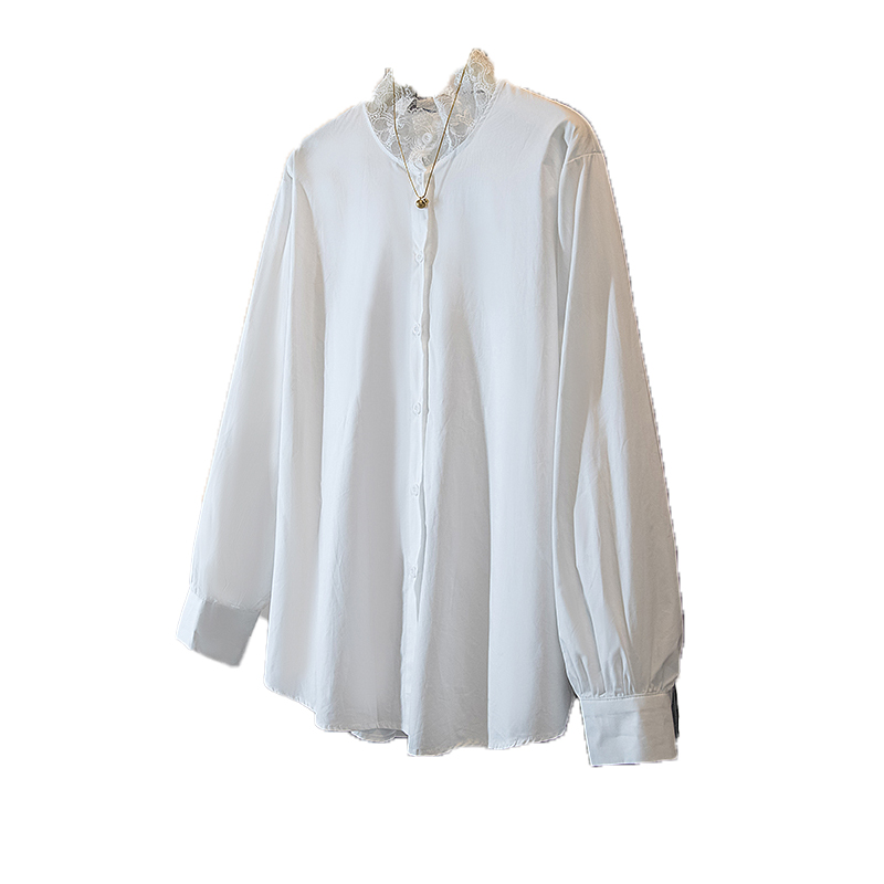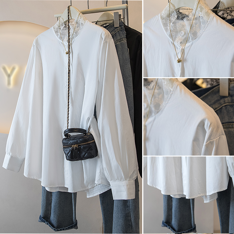 FA53471# 大码女装新款韩版高级感荷叶边长袖蕾丝拼接宽松显瘦衬衫上衣 服裝批發女裝批發服飾貨源