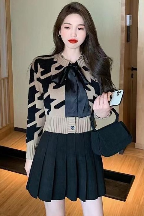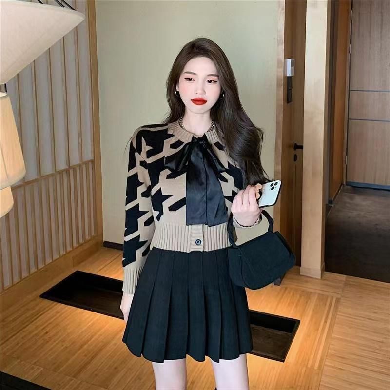 FA53799# 丝光棉温柔风奶牛纹提花针织开衫秋款小香风长袖短款毛衣 服裝批發女裝批發服飾貨源