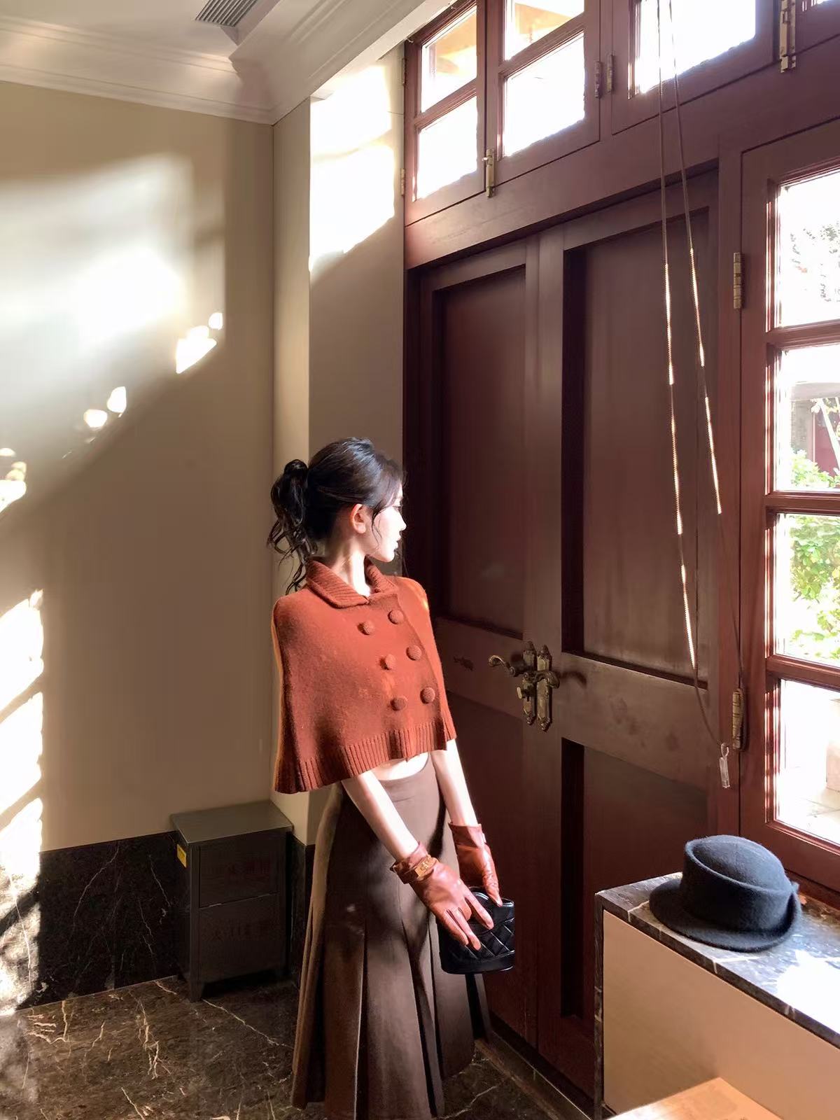 FA53804# 秋冬新款气质斗篷针织衫披肩女法式名媛宽松显瘦时尚休闲毛衣上衣 服裝批發女裝批發服飾貨源