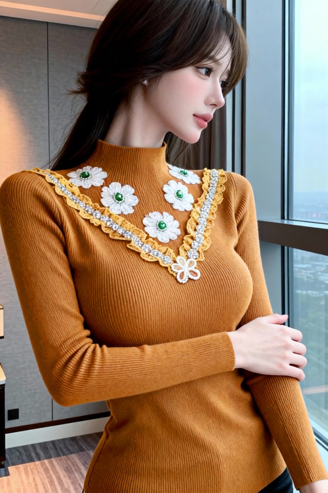 FA53961# 立领修身显瘦打底长袖针织衫常规款 服裝批發女裝批發服飾貨源