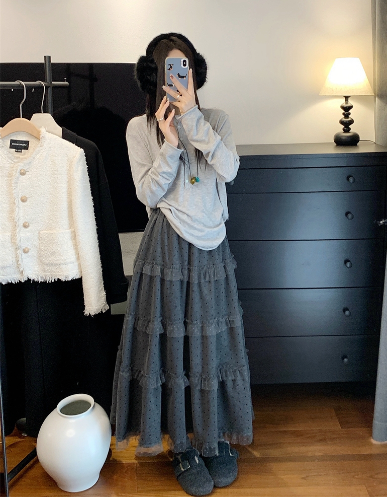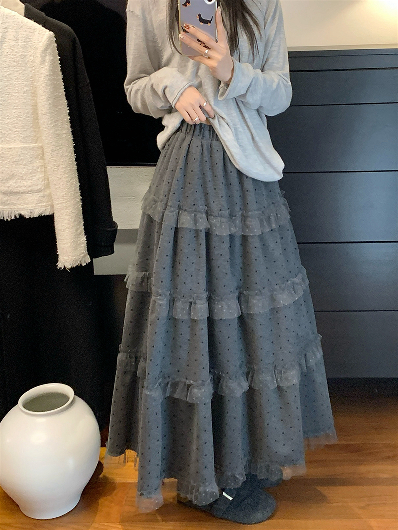 FA54022# ~春法式温柔风波点蛋糕半身裙女高腰A字蛋糕长裙 服裝批發女裝批發服飾貨源