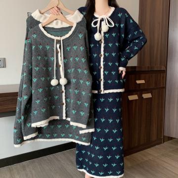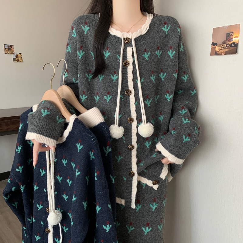 FA54166# 大码女秋冬新款胖MM毛衣撞色宽松显瘦软糯上衣半身裙两件套装 服裝批發女裝批發服飾貨源