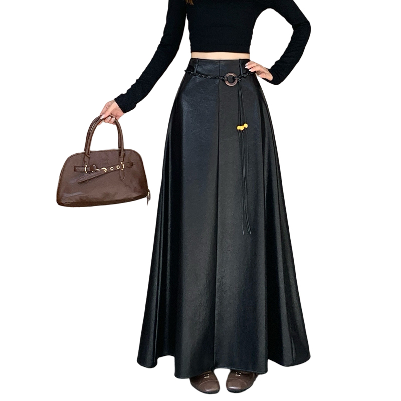 FA54206# 美拉德咖色PU皮半身裙女秋冬高腰显瘦遮跨百褶裙垂感A字大摆伞裙 服裝批發女裝批發服飾貨源