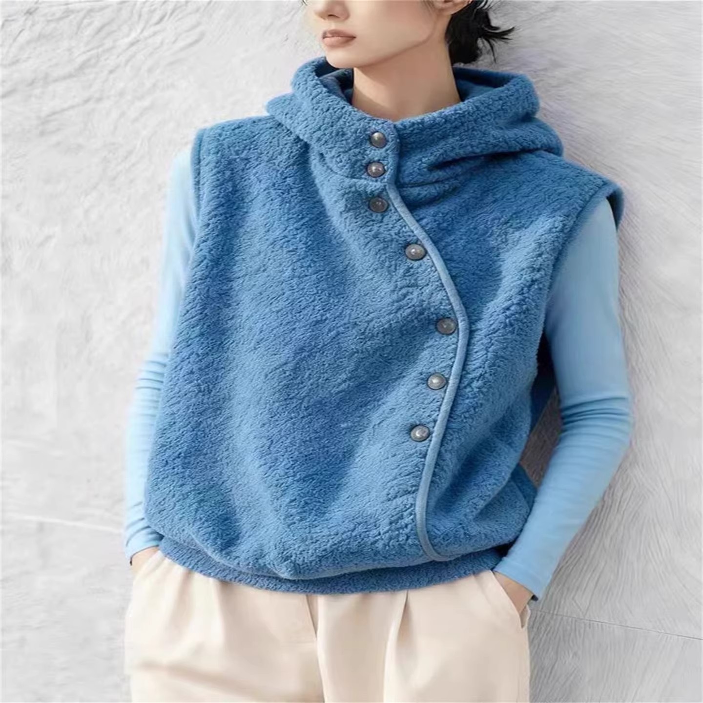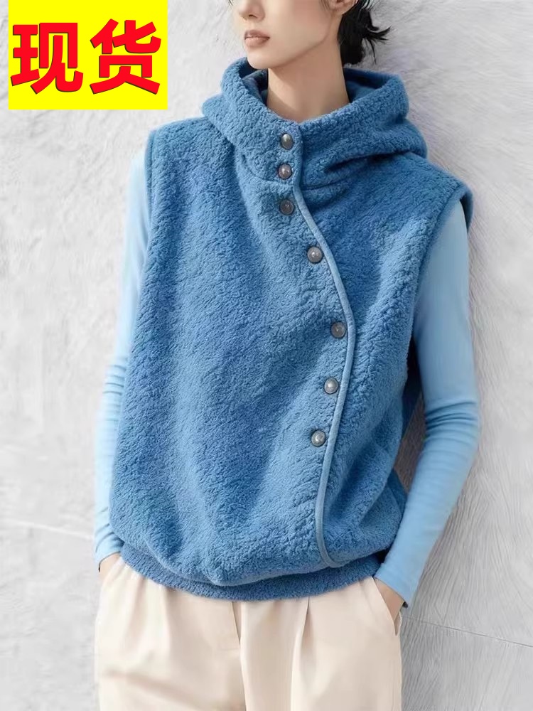 FA54919# 专柜撤回多巴胺独特超好看高级感蓝色羊羔毛摇粒绒马夹外套女秋冬 服裝批發女裝批發服飾貨源
