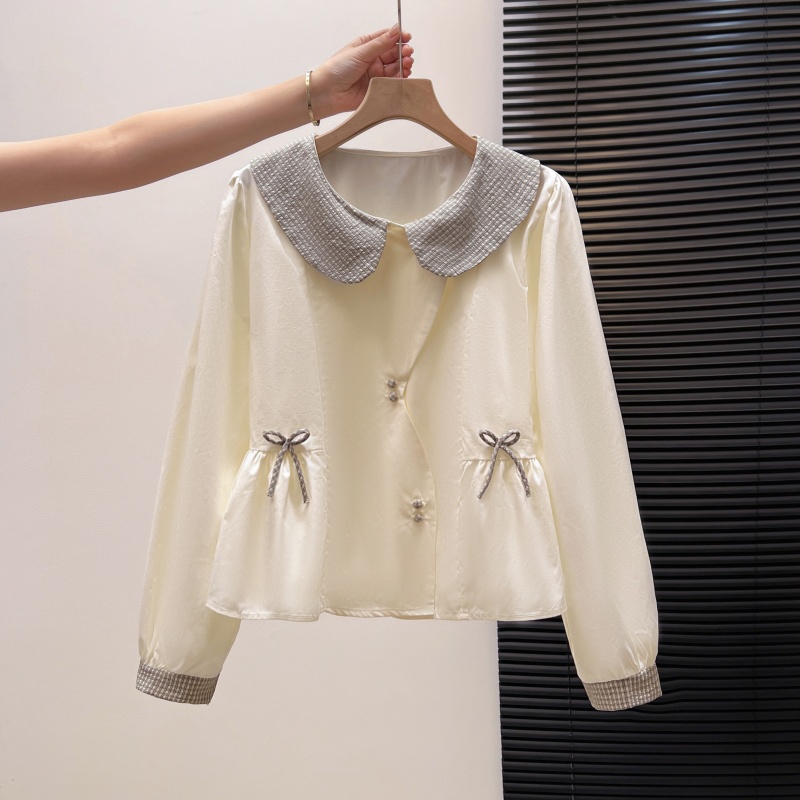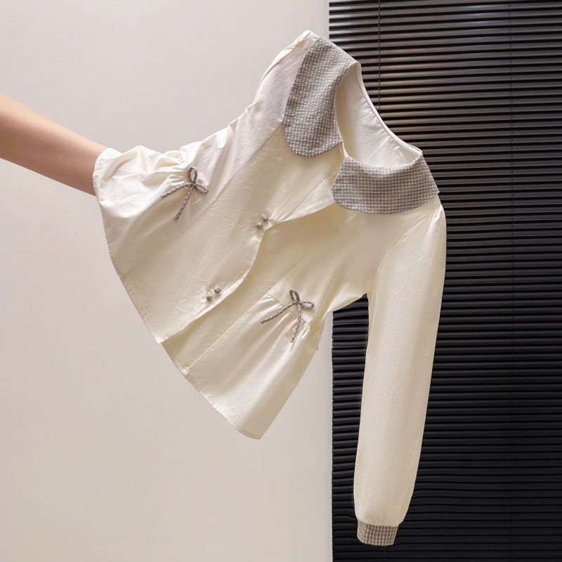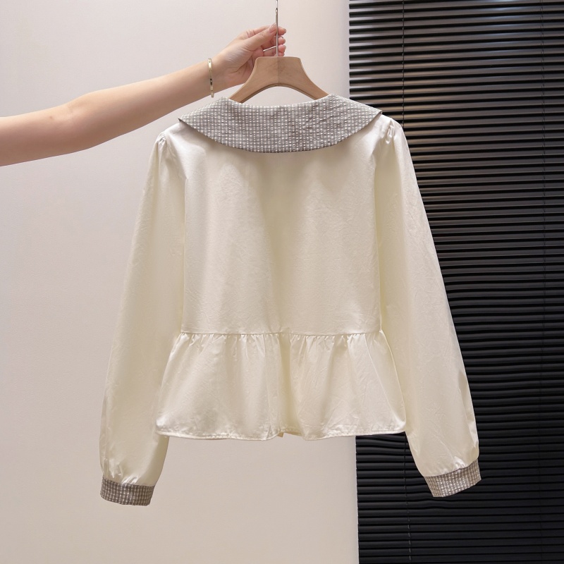 FA55152# 法式格子荷叶边衬衫上衣女春款气质好看宽松显瘦设计感长袖 服裝批發女裝批發服飾貨源