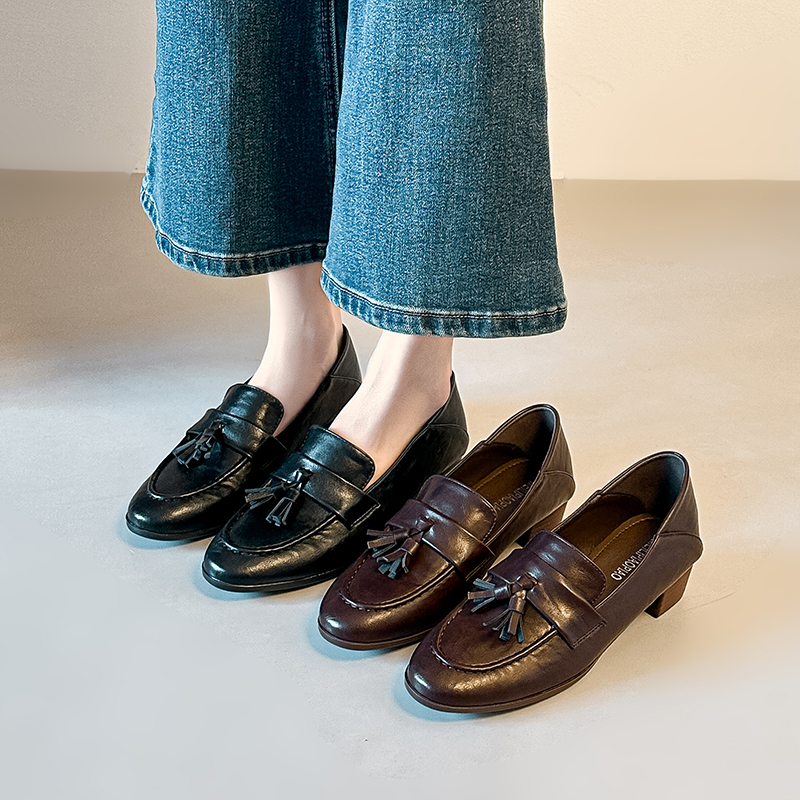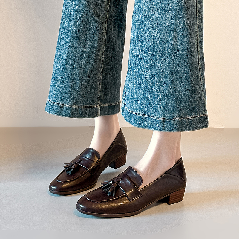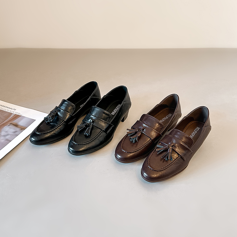 X-32974#棕色乐福鞋女款新款秋季软底流苏英伦风小皮鞋低跟单鞋 鞋子批发女鞋批发高跟鞋批发