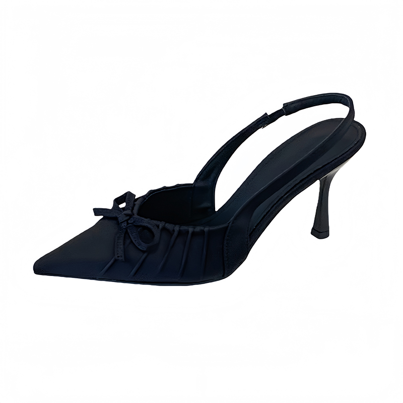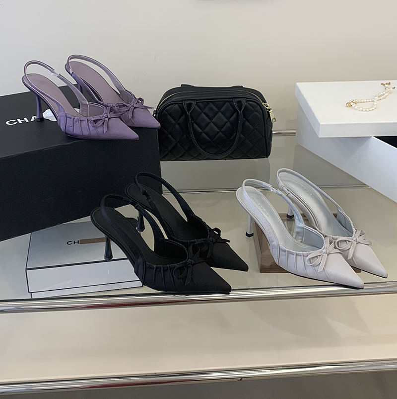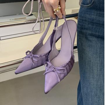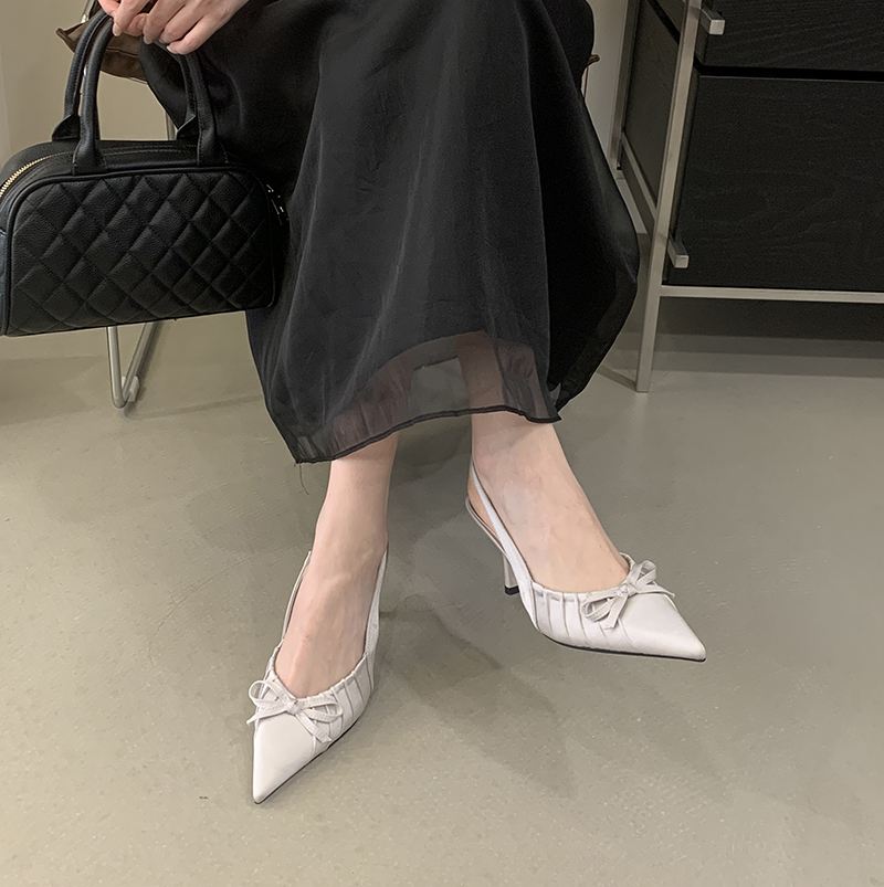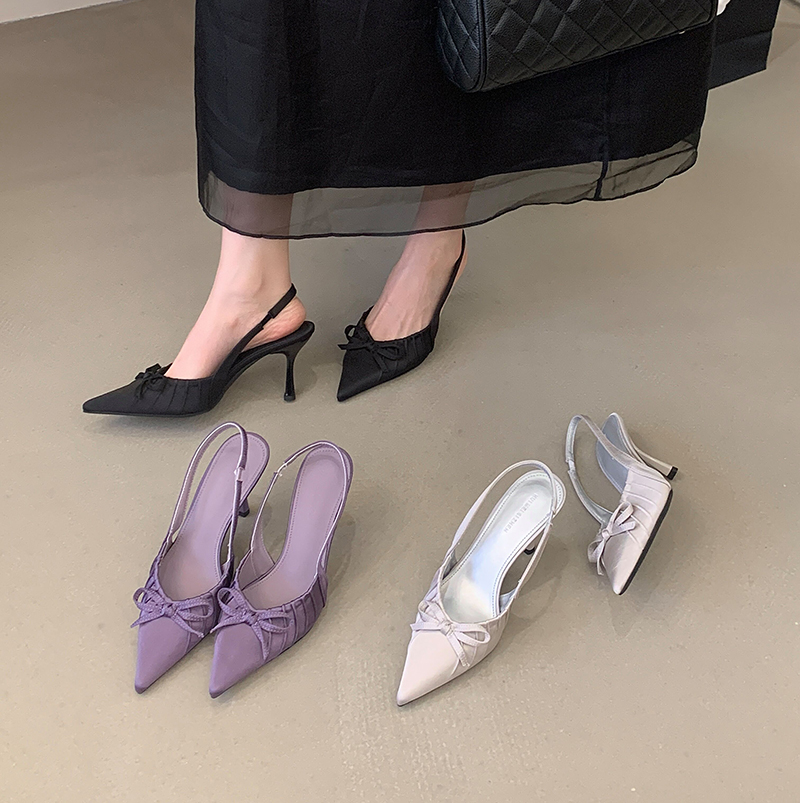 X-32981#春款跟高尖头前包后凉鞋高跟鞋女夏新款蝴蝶结浅口百搭凉鞋 鞋子批发女鞋批发高跟鞋批发