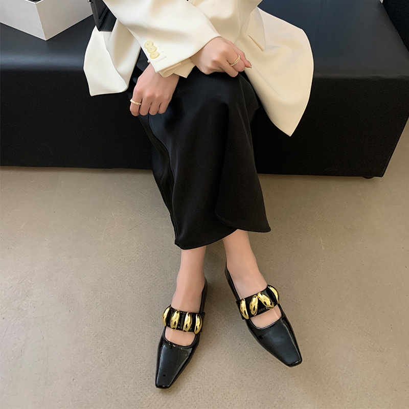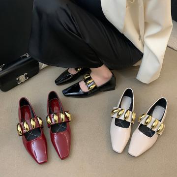 X-33027#复古玛丽珍鞋仙女鞋新款春季法式平底红色金属扣晚晚单鞋 鞋子批发女鞋批发高跟鞋批发