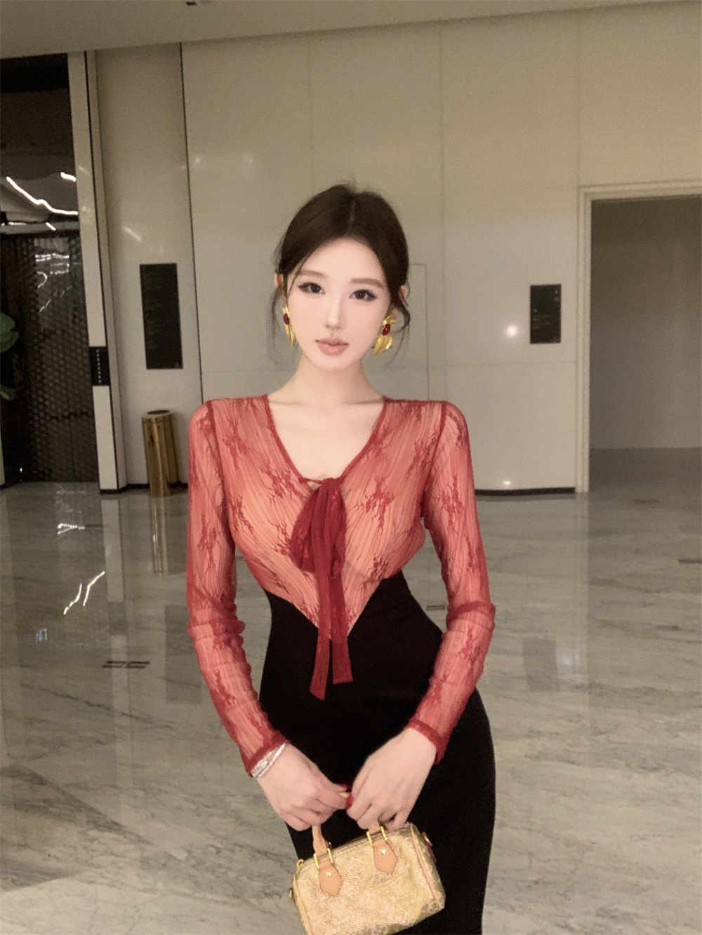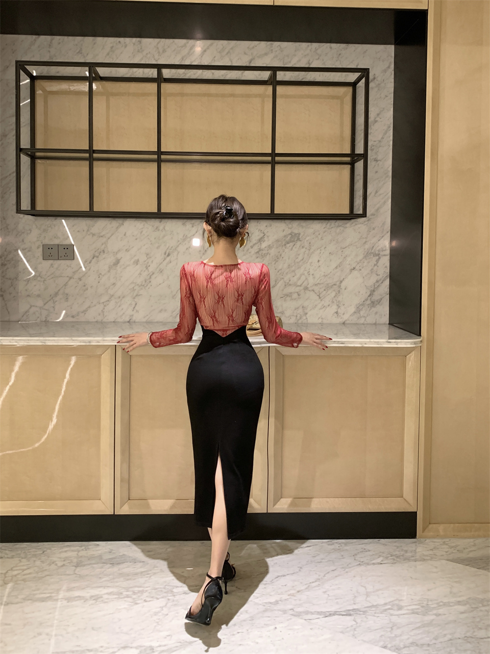 细节:上面蕾丝拼接 侧边拉链 有内衬 不透,