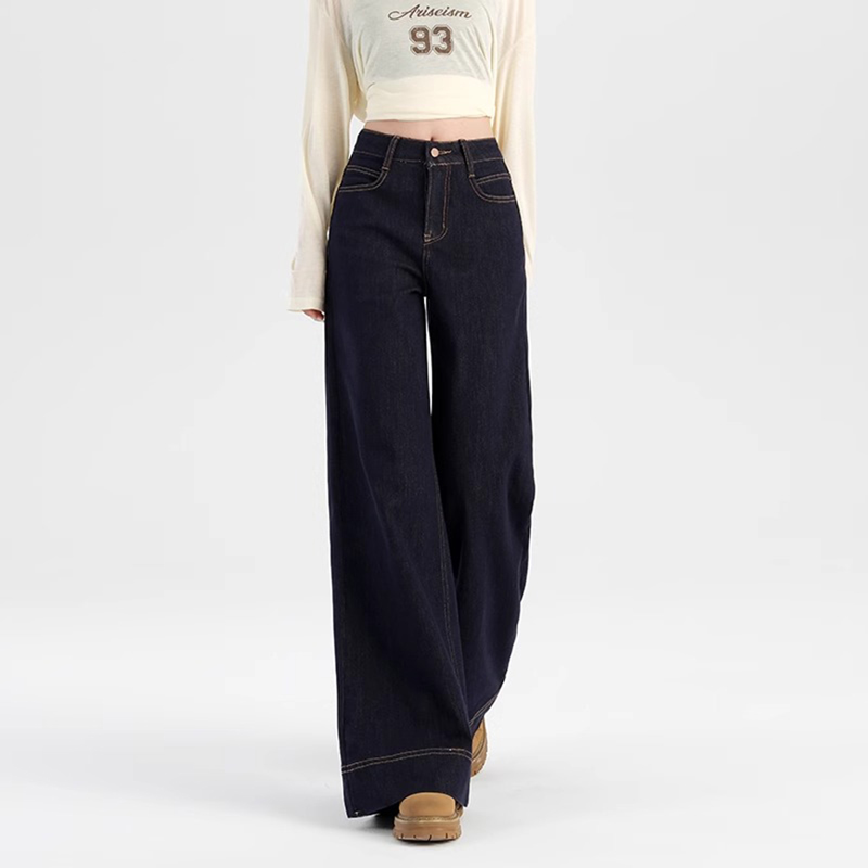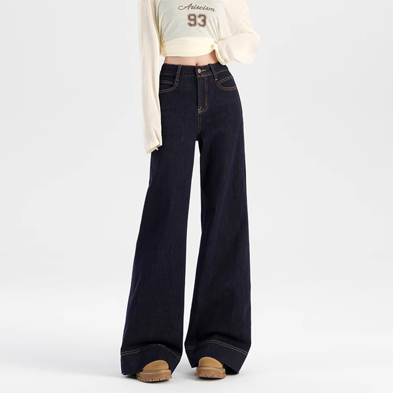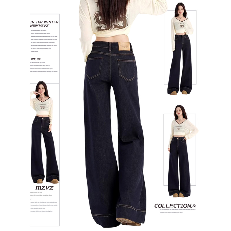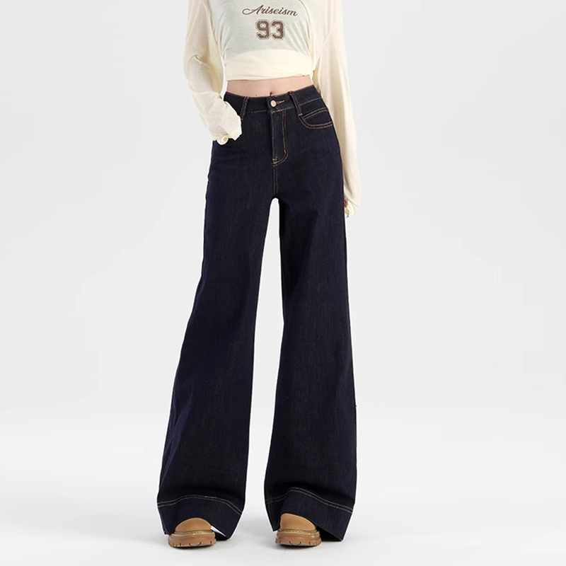 FA55553# 深蓝色百搭牛仔裤女春秋新款高腰显瘦时尚宽松设计感微喇裤子 服裝批發女裝批發服飾貨源