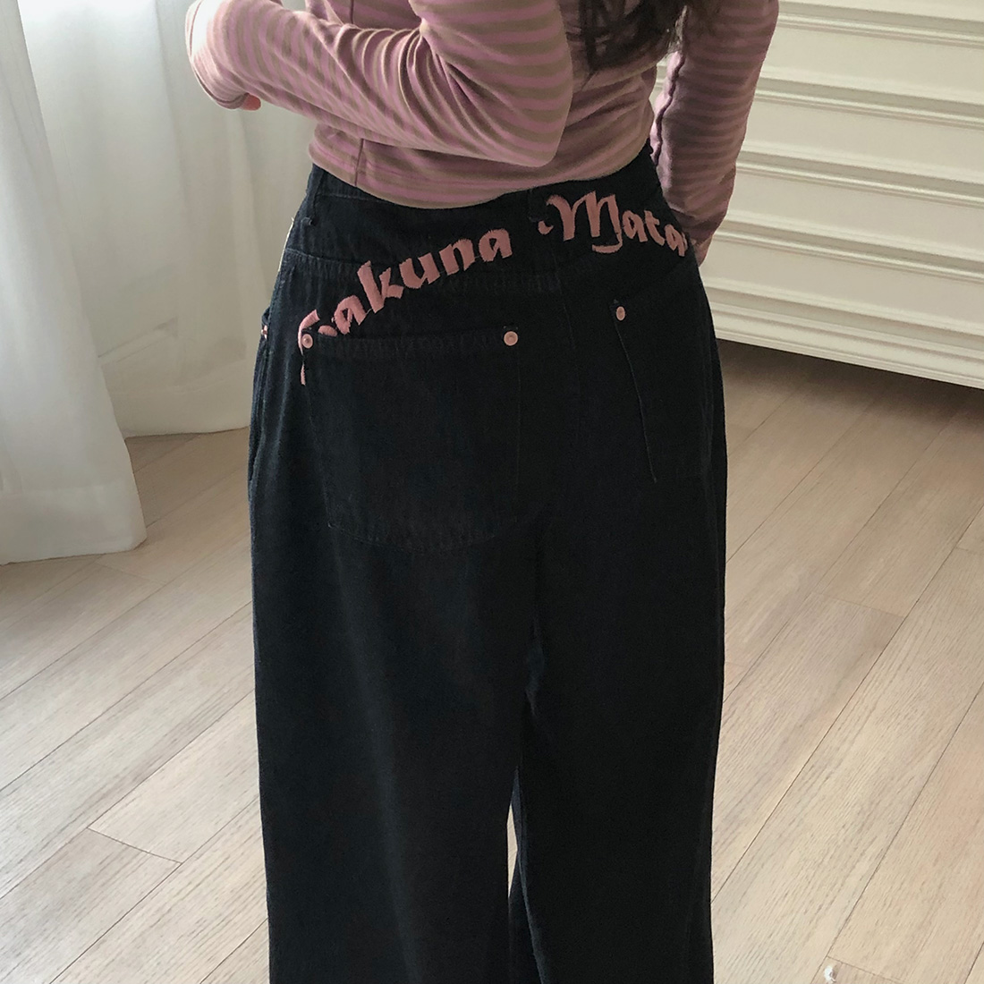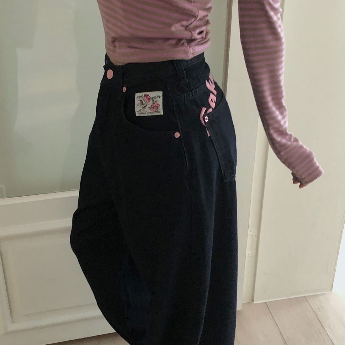 FA55582# 甜酷辣妹PP刺绣字母宽松牛仔裤 服裝批發女裝批發服飾貨源
