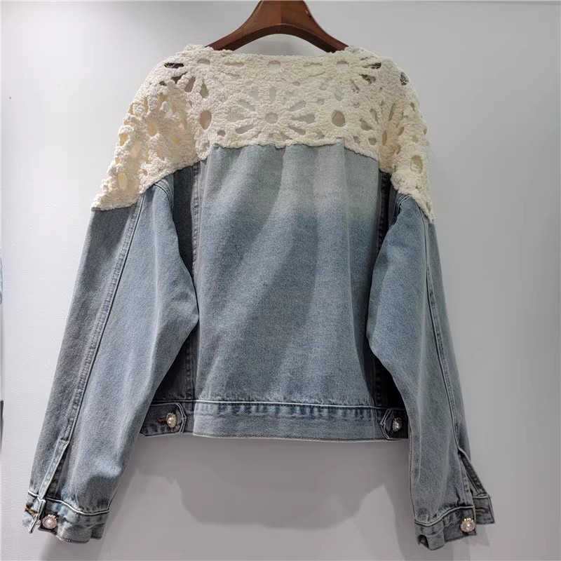 Home > 风衣、西装外套 > FA55633# 新款欧货女装时尚拼接蕾丝牛仔短款外套 服裝批發女裝批發服飾貨源