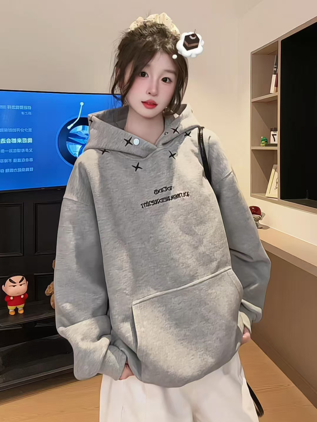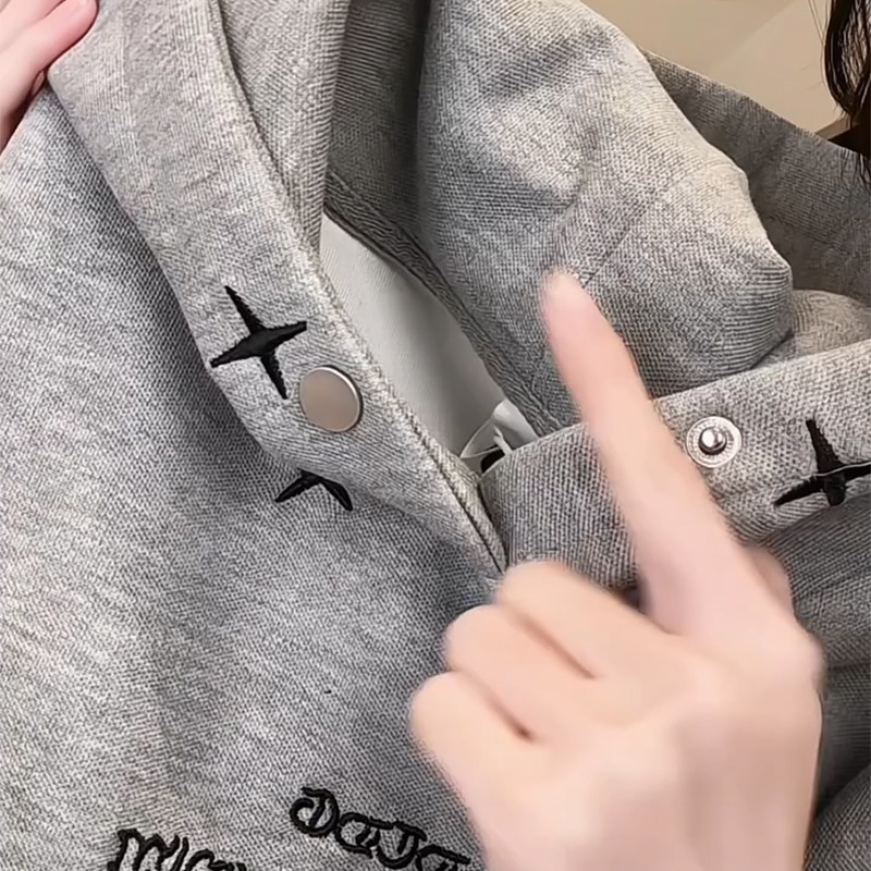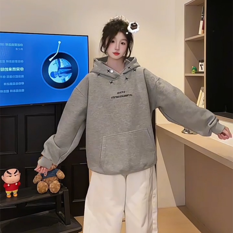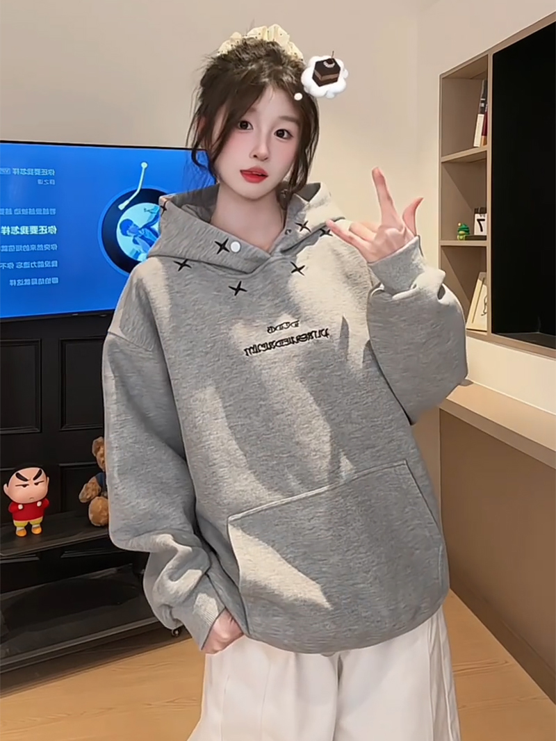 FA56175# 薄款卫衣男女情侣装春秋薄新款设计感宽松刺绣花连帽上衣 服裝批發女裝批發服飾貨源
