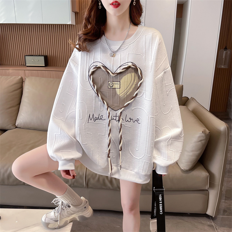 FA56201# 首发后包领提花韩版宽松大码印花立体装饰薄款卫衣女 服裝批發女裝批發服飾貨源