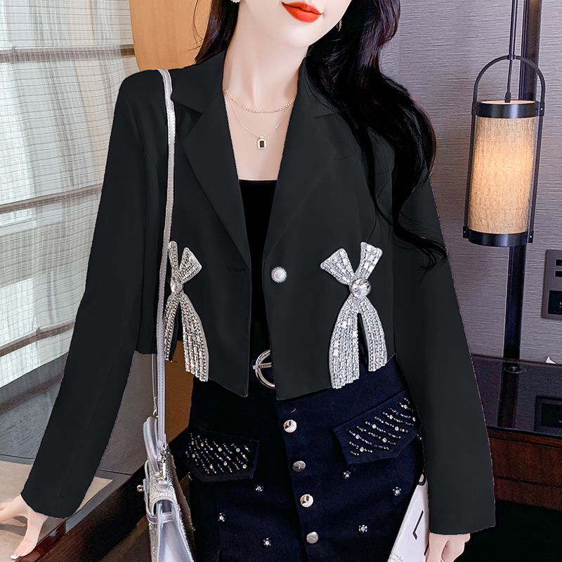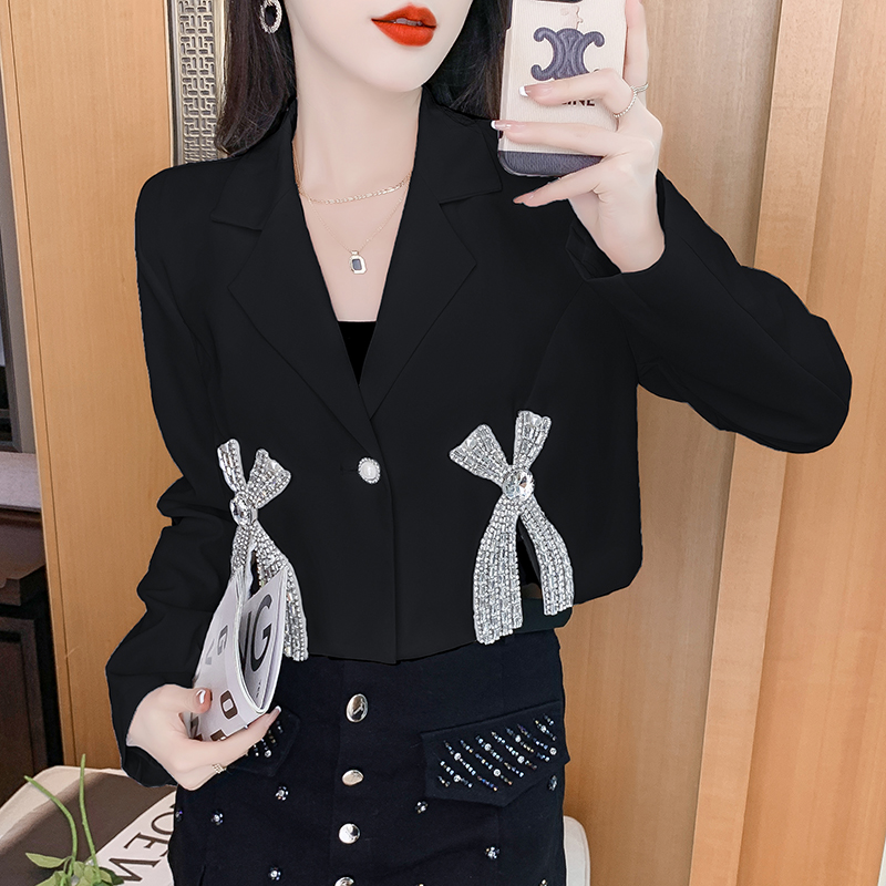 FA56247# 春装长袖重工镶钻设计感翻领西装外套新款百搭小众女装新款 服裝批發女裝批發服飾貨源