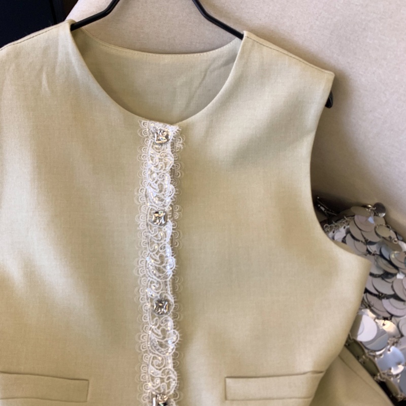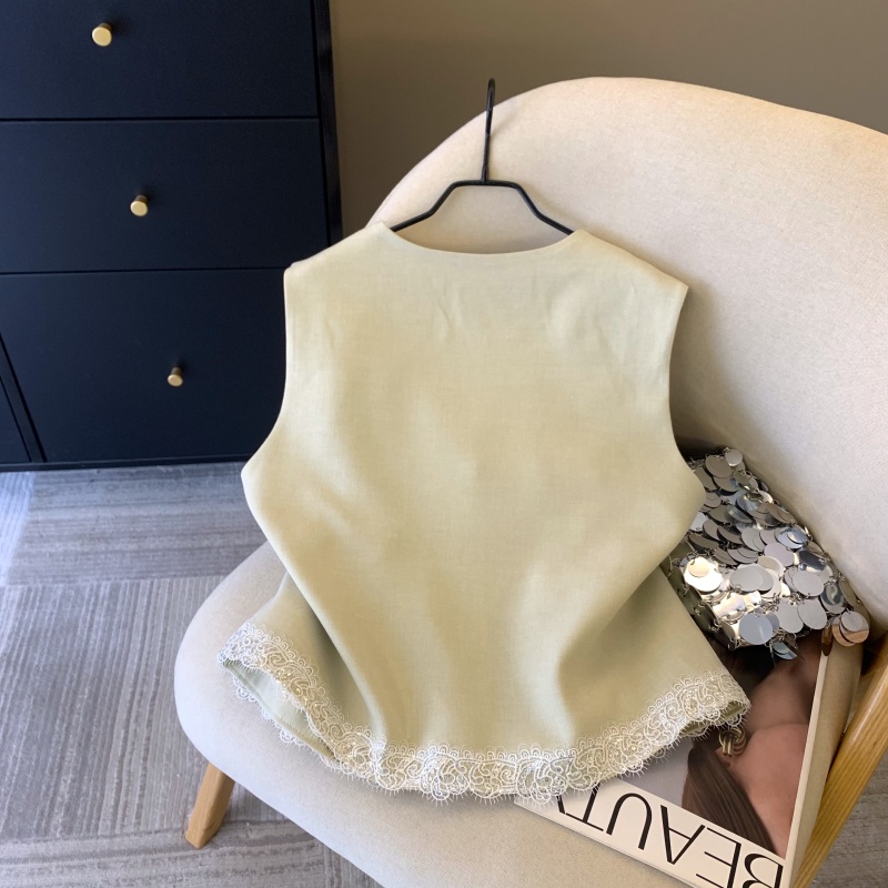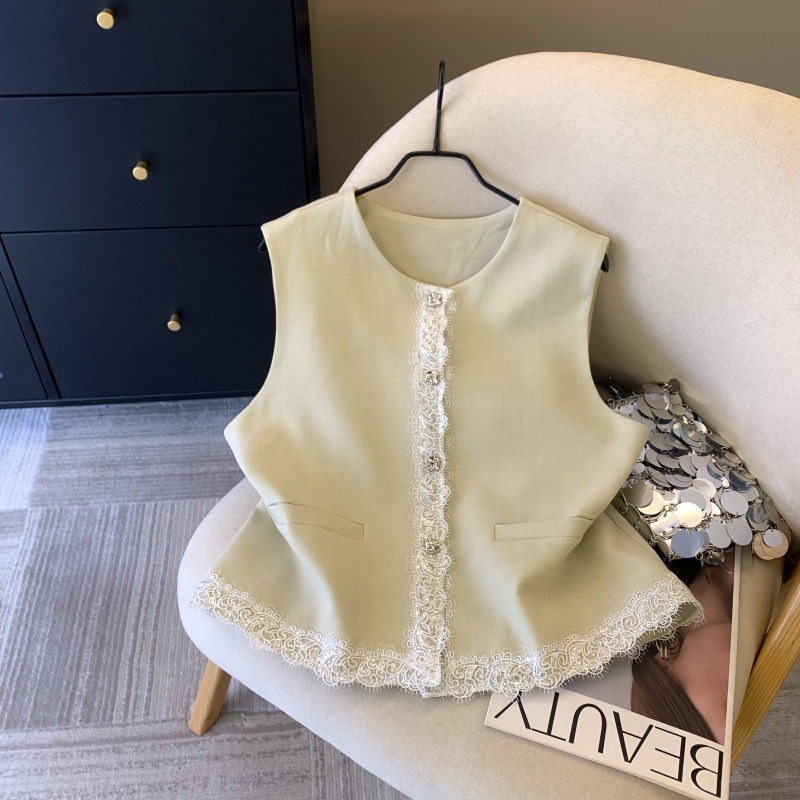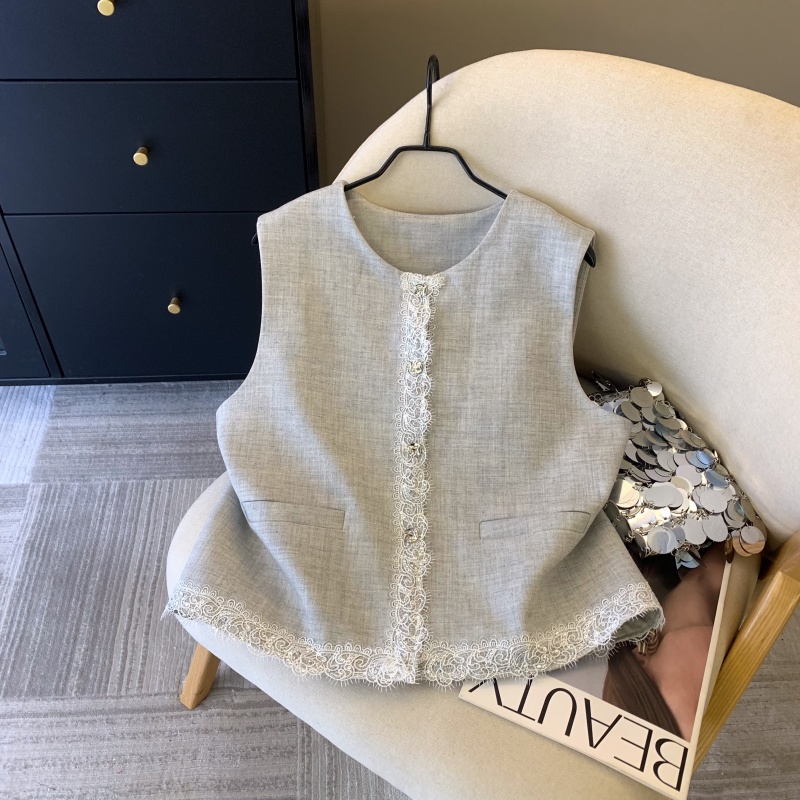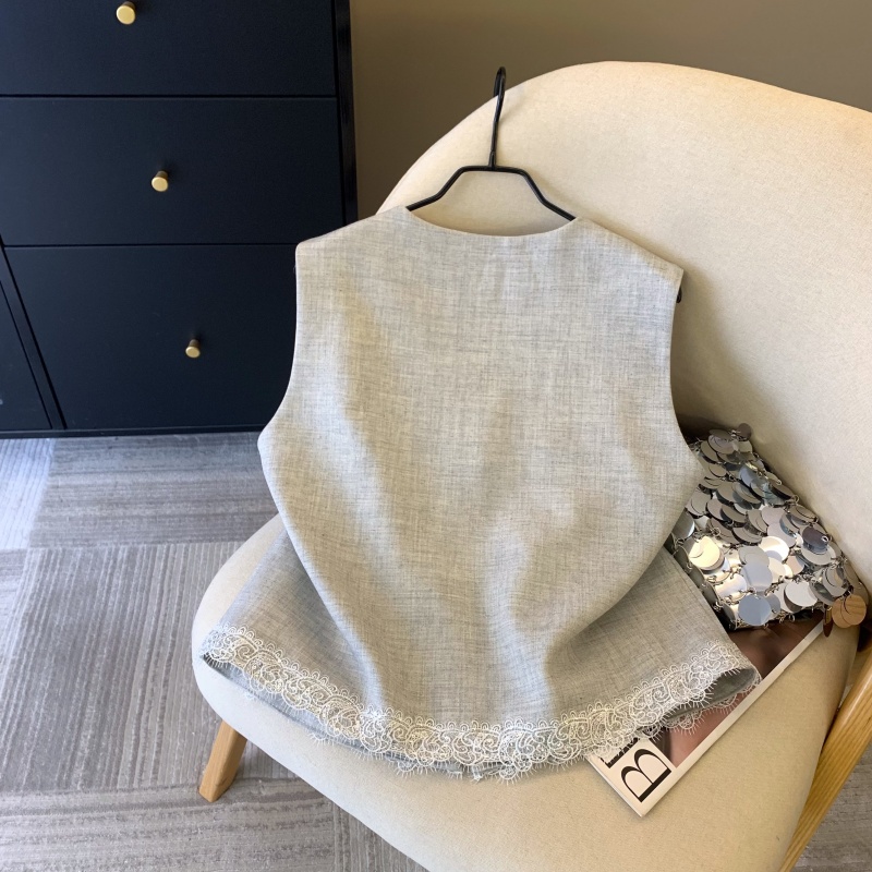 FA56259# 上高级蕾丝花边拼接西装马甲春季时尚叠穿上衣显瘦外套 服裝批發女裝批發服飾貨源