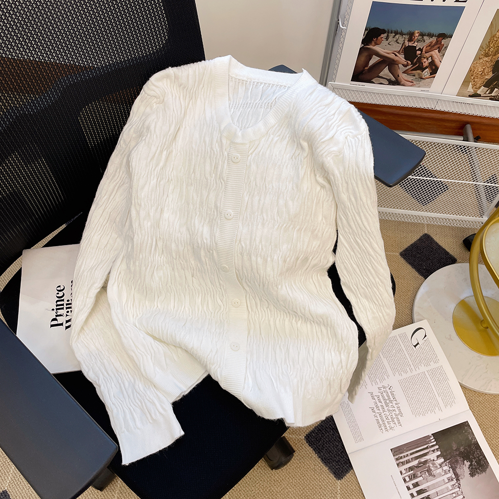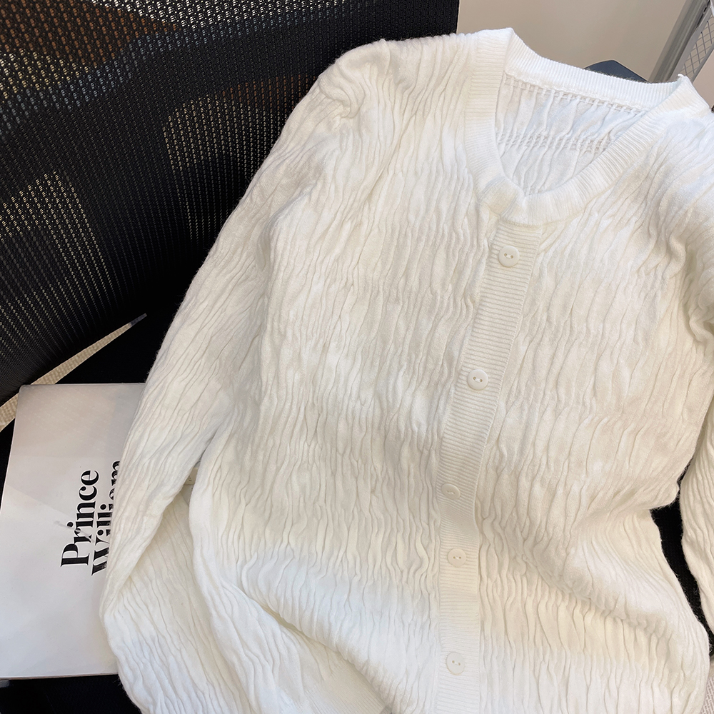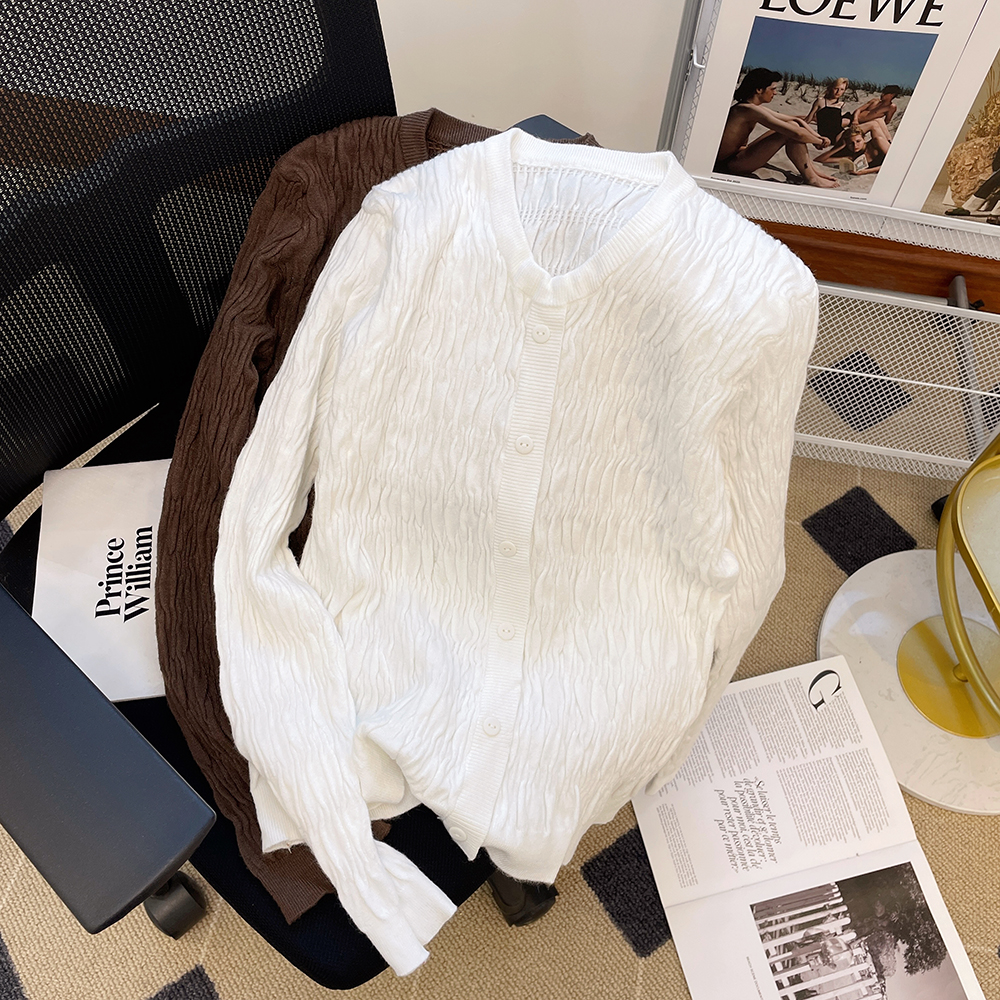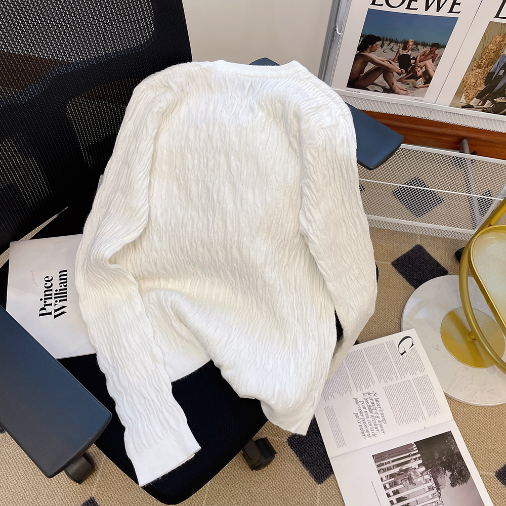 FA56261# 上褶皱白色长袖女设计感小众上衣春秋新款宽松短款衬衣 服裝批發女裝批發服飾貨源