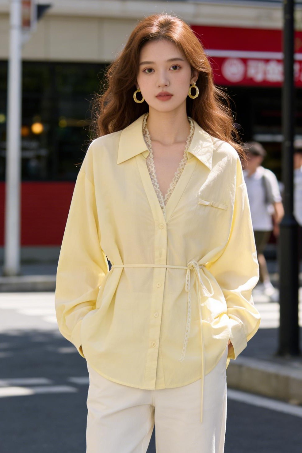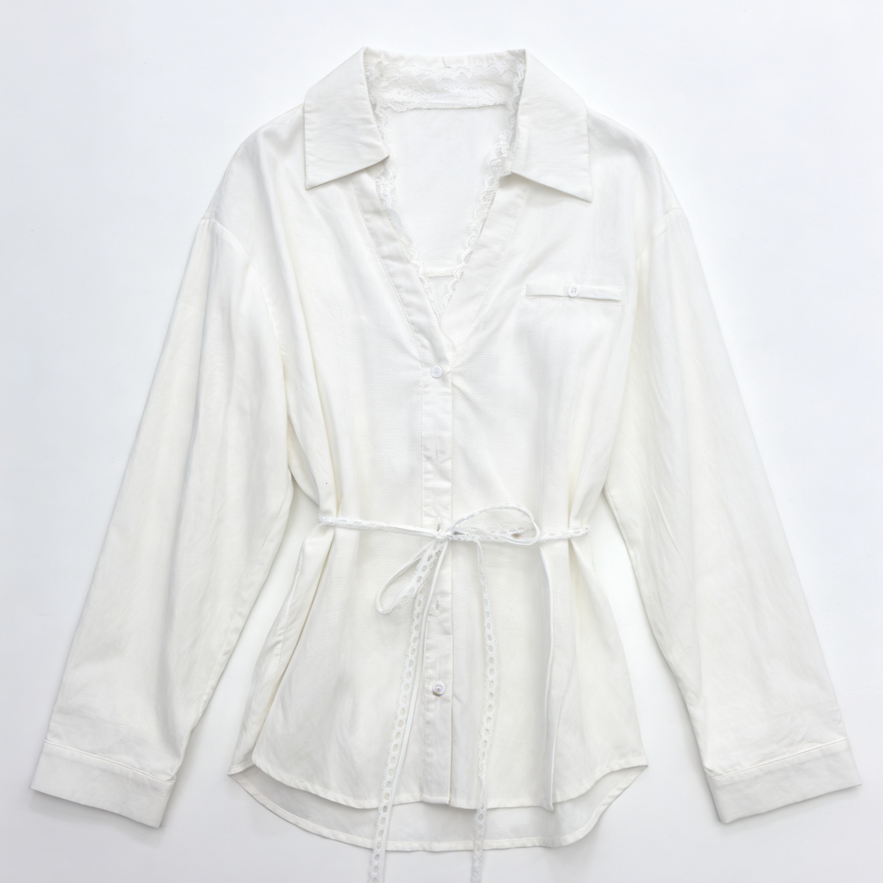 FA56267# 有货春夏新款韩版法式翻领蕾丝花边长袖衬衫女宽松白色上衣 服裝批發女裝批發服飾貨源