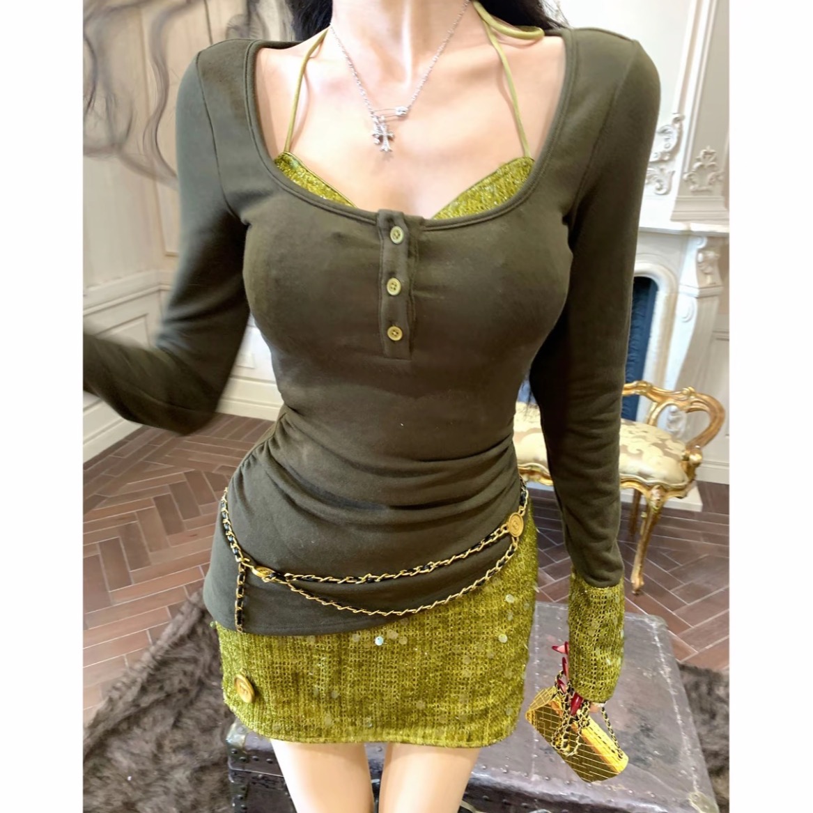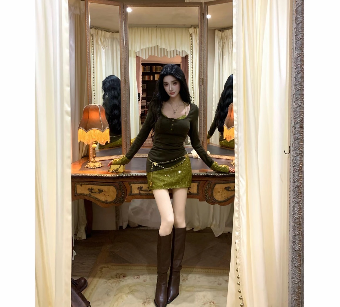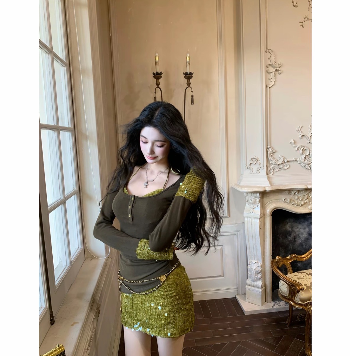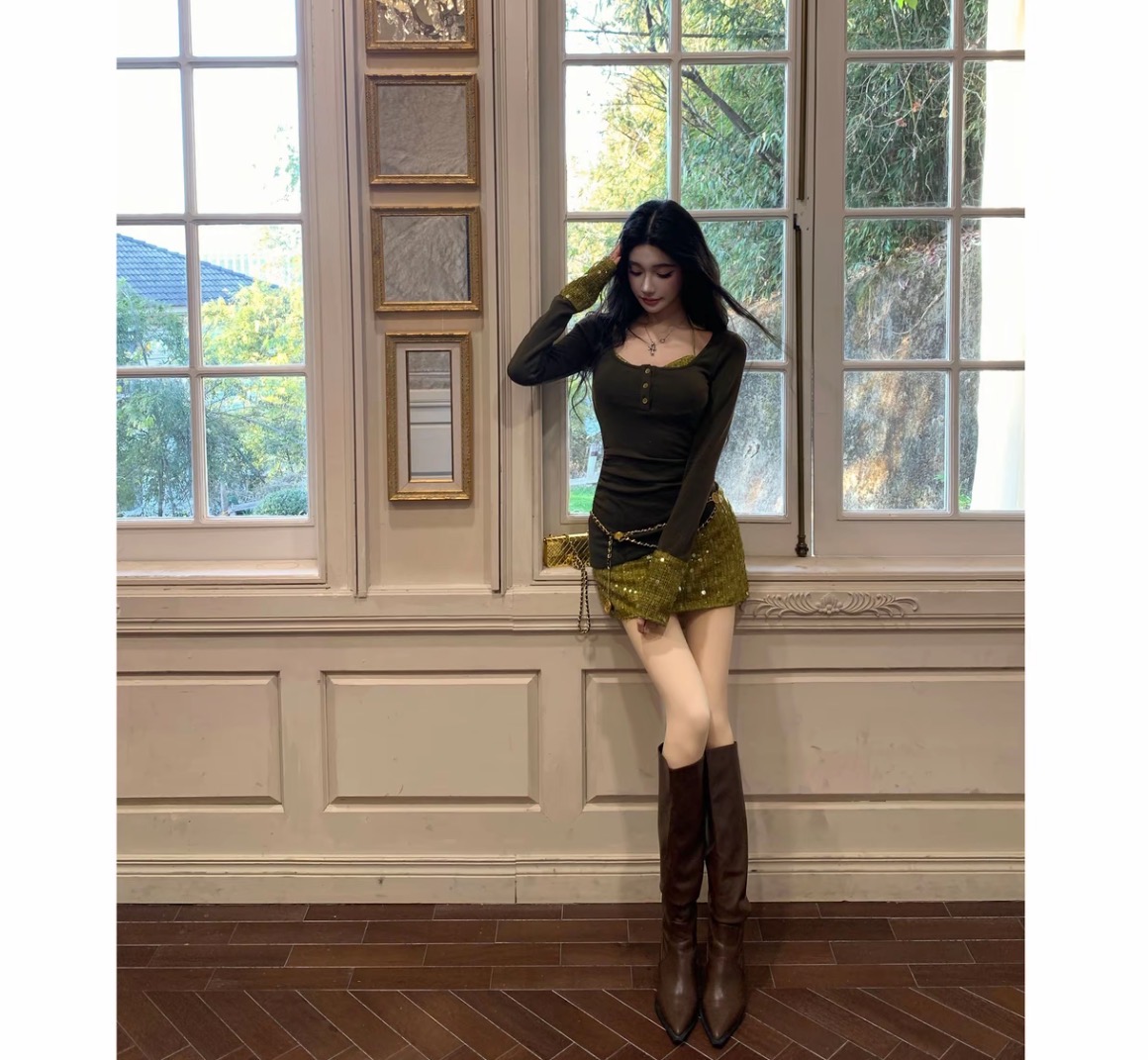FA56280# 假日穿搭假两件珠片拼针织连衣裙 服裝批發女裝批發服飾貨源
