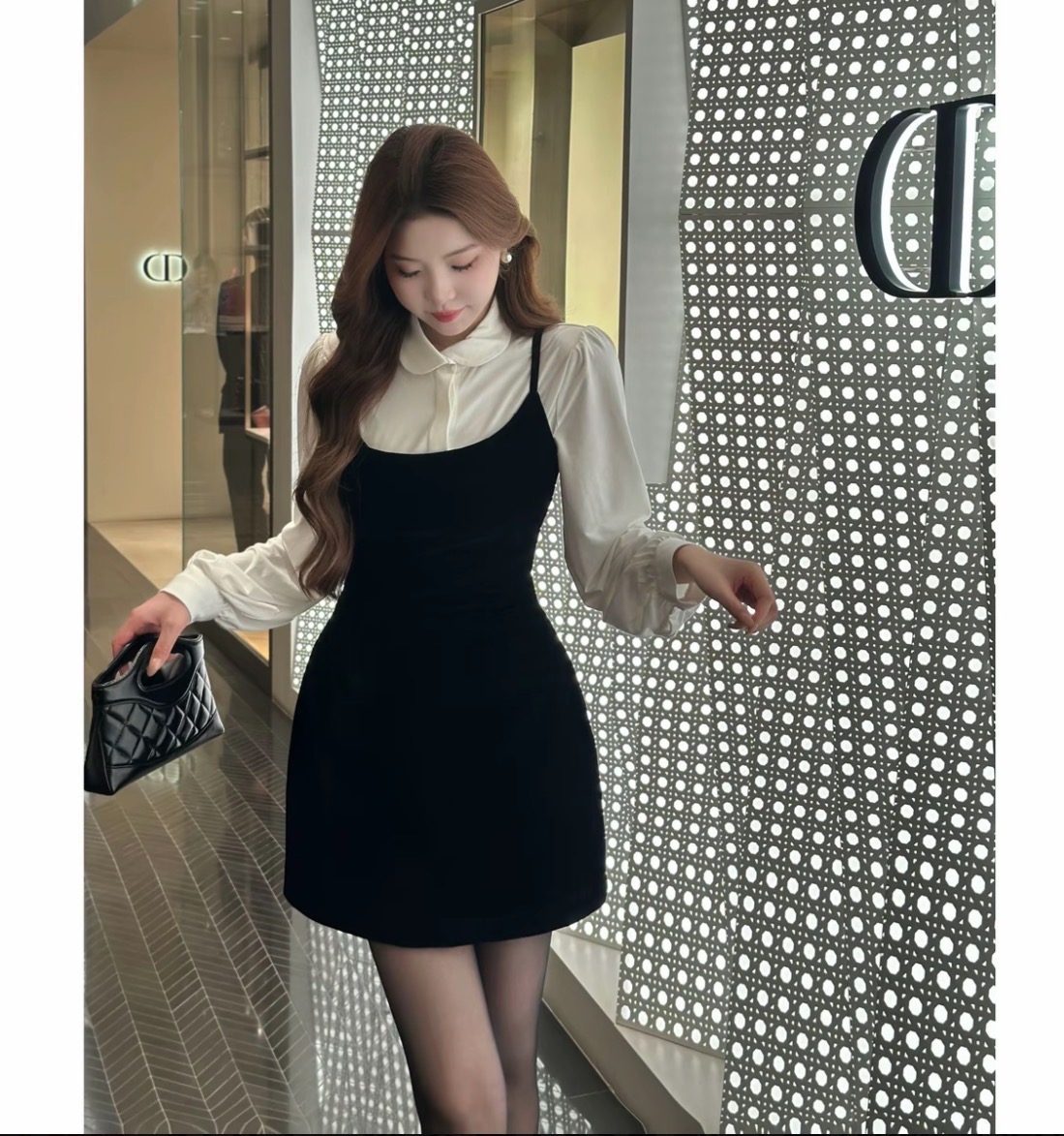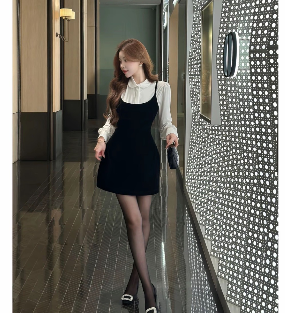 FA56282# SZA雪夜繁星冬季新款高级感气质内搭上衣+吊带连衣裙套装 服裝批發女裝批發服飾貨源