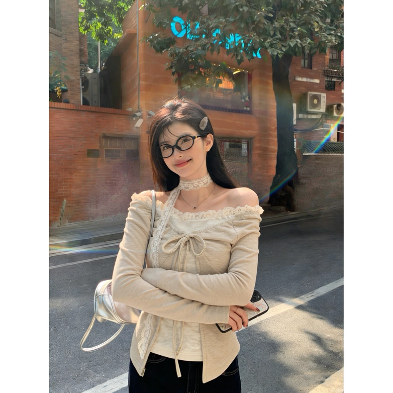 FA56429# 蕾丝花边假两件上衣女 服裝批發女裝批發服飾貨源