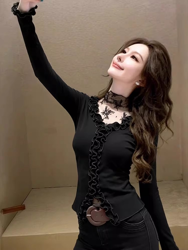 FA56455# 巨好看的氛围感上衣韩系气质轻熟小众不撞款洋气高级感黑色T恤冬 服裝批發女裝批發服飾貨源