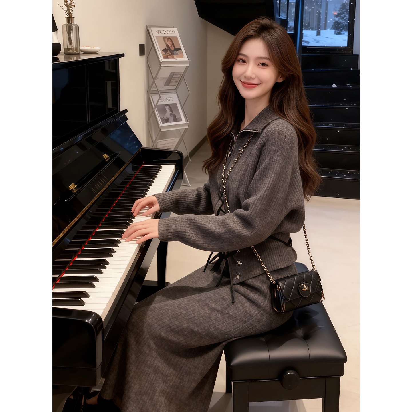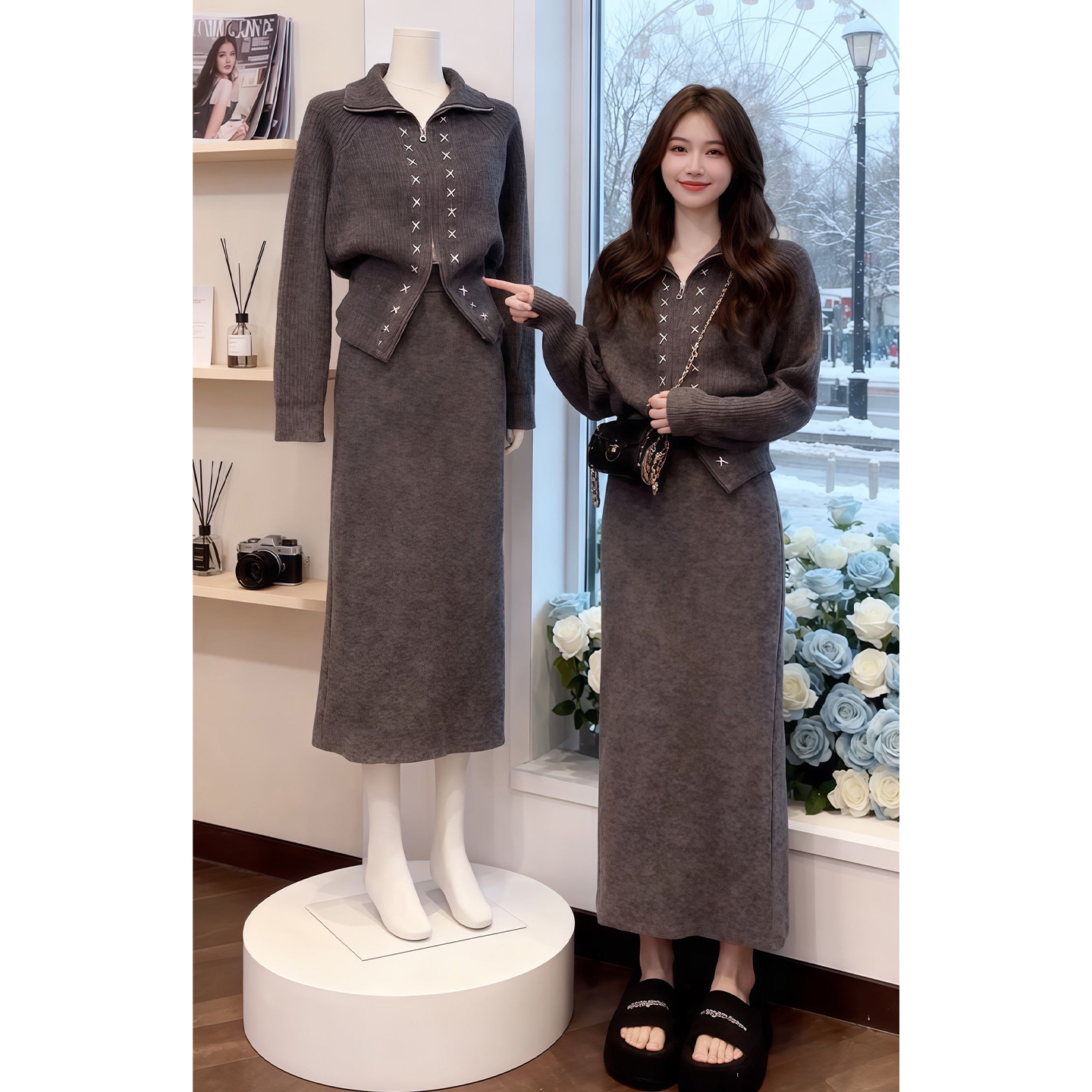 Home > 韩版套装 > FA56567# 韩系灰色针织毛衣连衣裙子女冬季新款巨好看穿搭一整套装长裙 服裝批發女裝批發服飾貨源