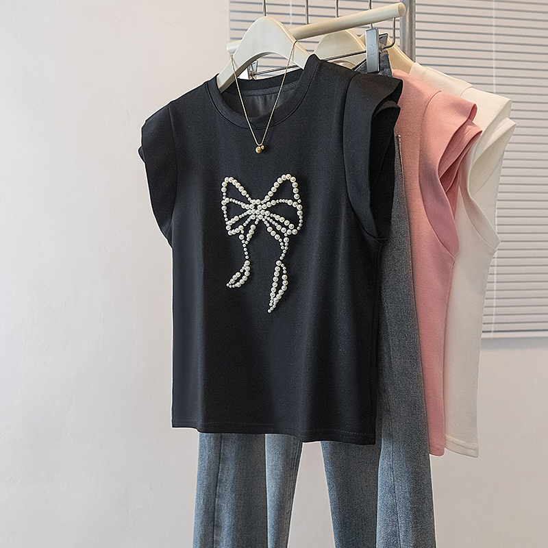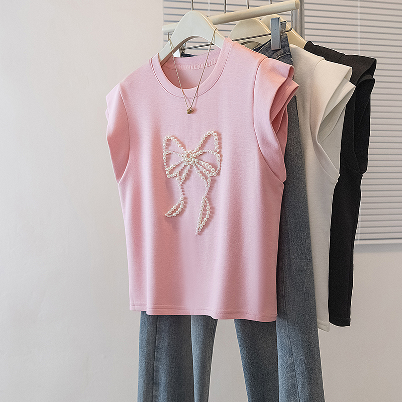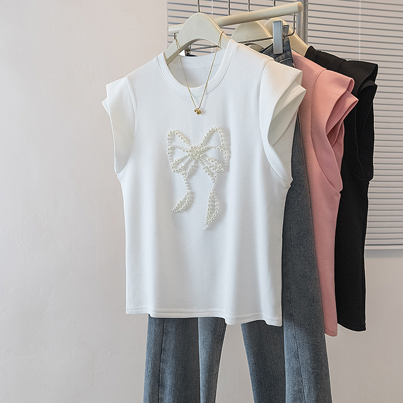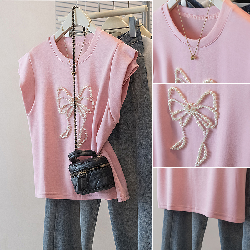 BY10525# 大码女装新款韩版胖MM高级感钉珠潮流蝴蝶结设计显瘦修身上衣 服裝批發女裝批發服飾貨源