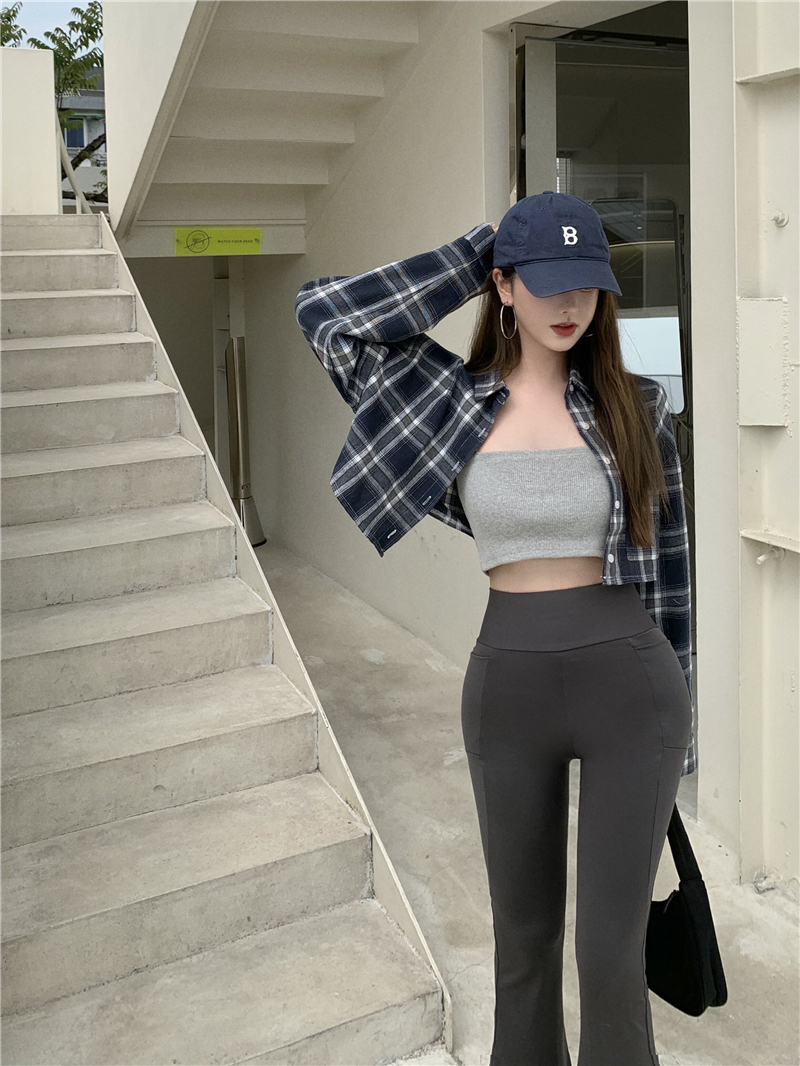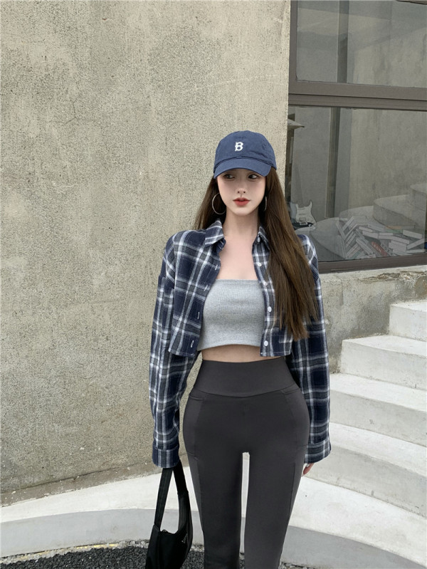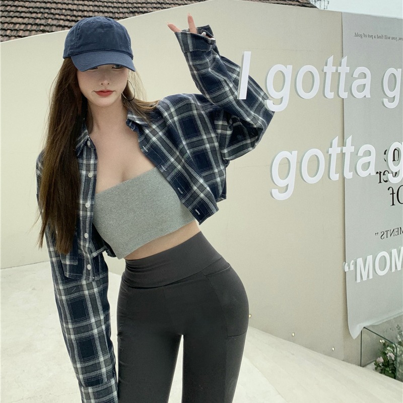 BY11453# 格子长袖衬衫女ins休闲夏季新款薄款百搭小众设计感外穿衬衣 服裝批發女裝批發服飾貨源