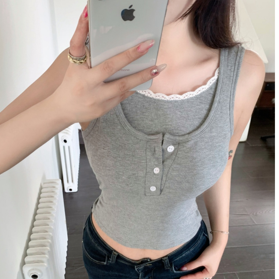 Home > 打底背心、防晒衣、围巾、披肩 > BY11542# 蕾丝假两件吊带背心女春夏季修身显瘦内搭外穿打底上衣 服裝批發女裝批發服飾貨源