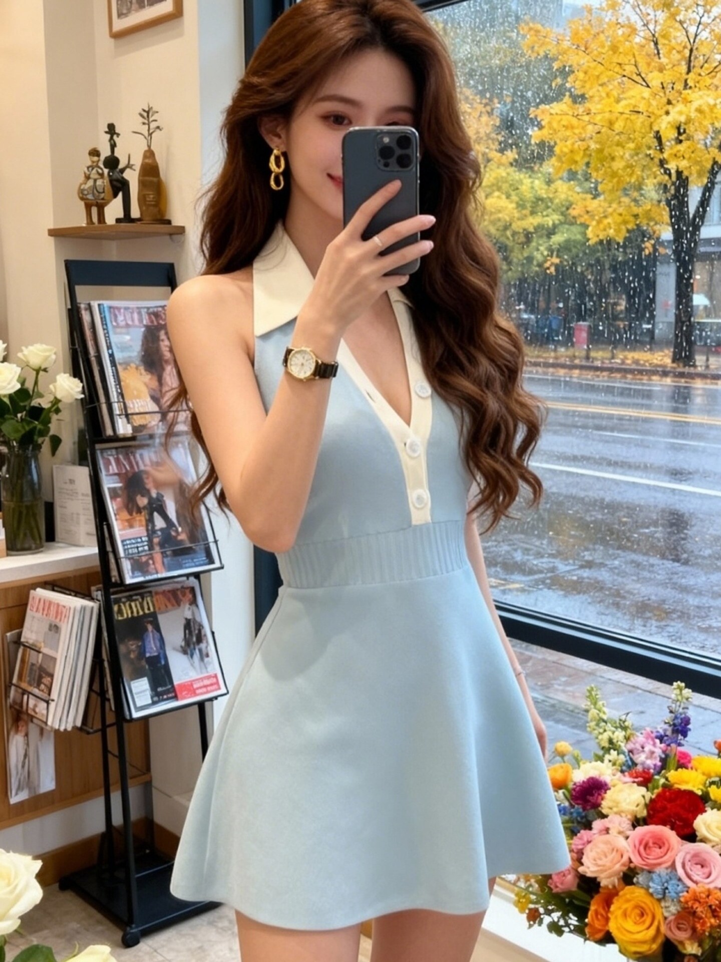 BY11543# 韩国温柔风无袖翻领连衣裙女春夏新款设计感收腰显瘦气质短裙 服裝批發女裝批發服飾貨源