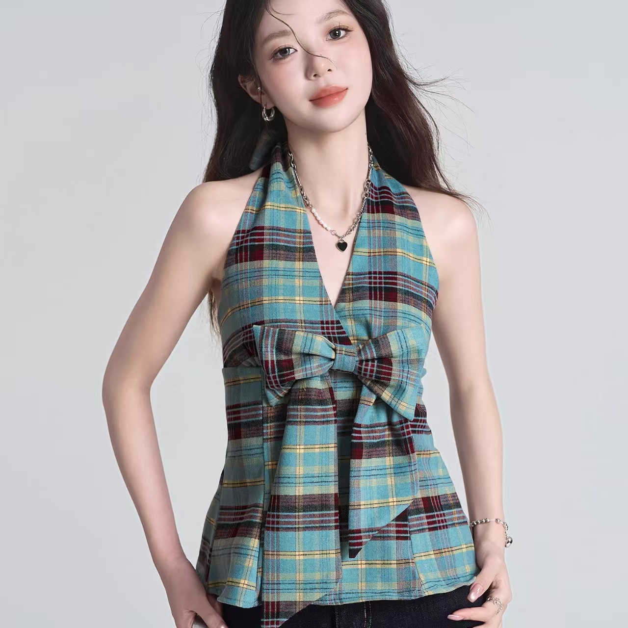 BY11991# 背心短款上衣女夏季新款法式蝴蝶结气质挂脖绑带露背吊带背心 服裝批發女裝批發服飾貨源