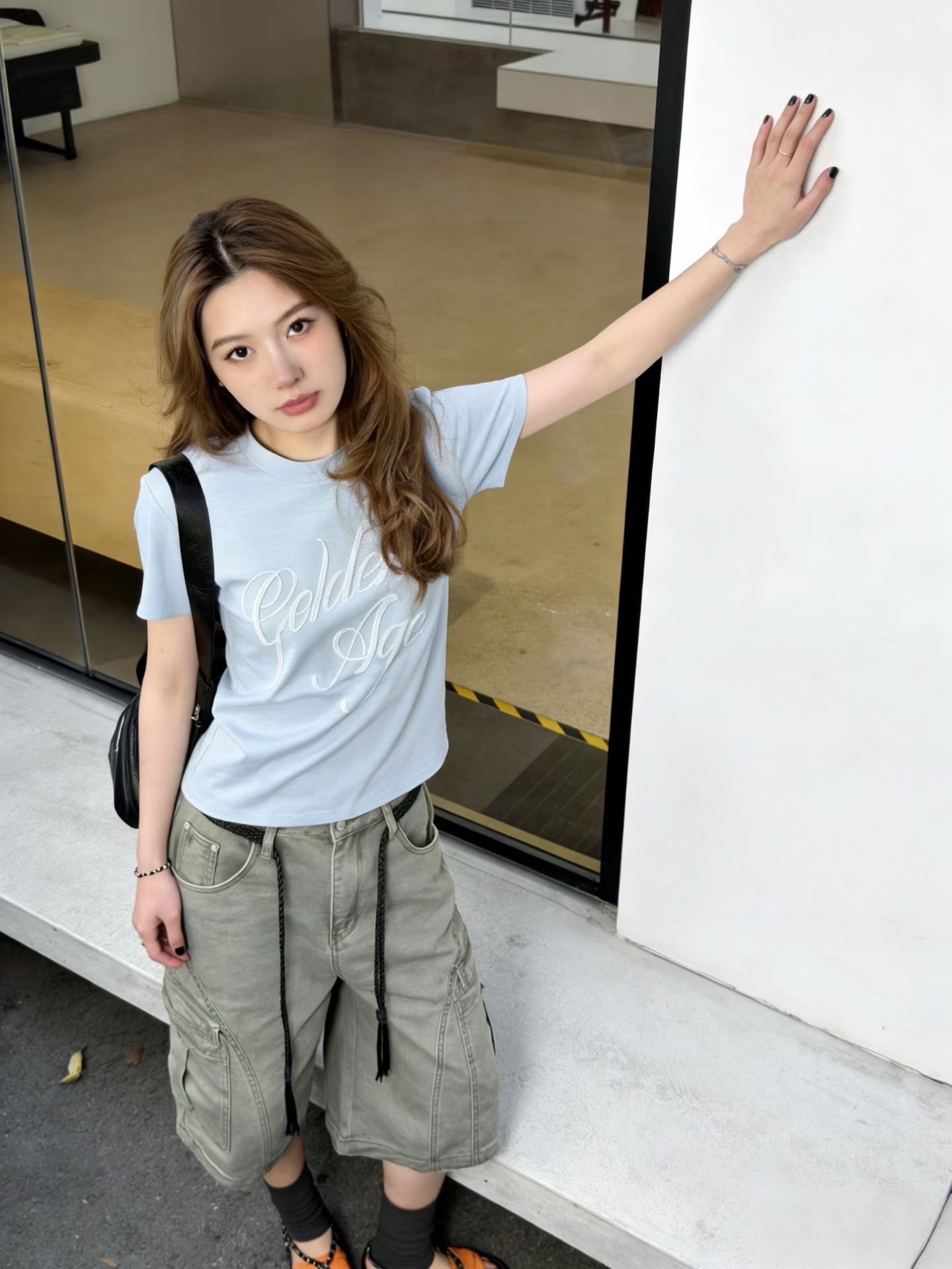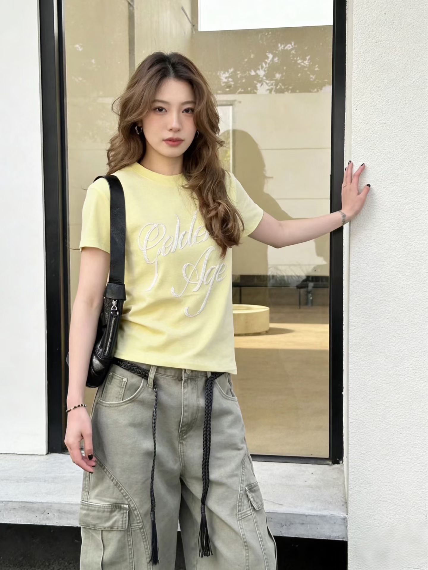 BY12153# 设计感重工字母钉珠短袖T恤女春夏新款洋气内搭打底小衫上衣 服裝批發女裝批發服飾貨源