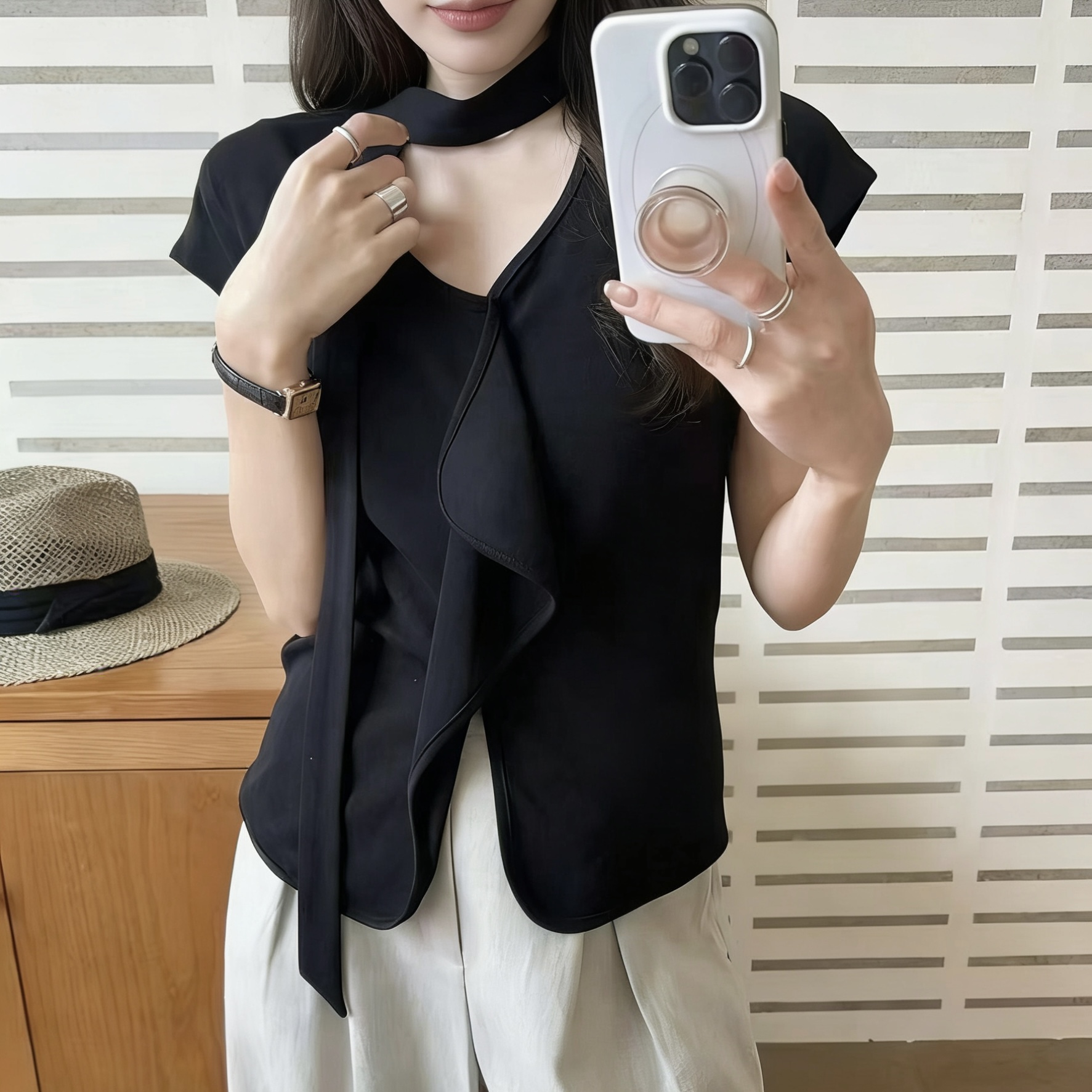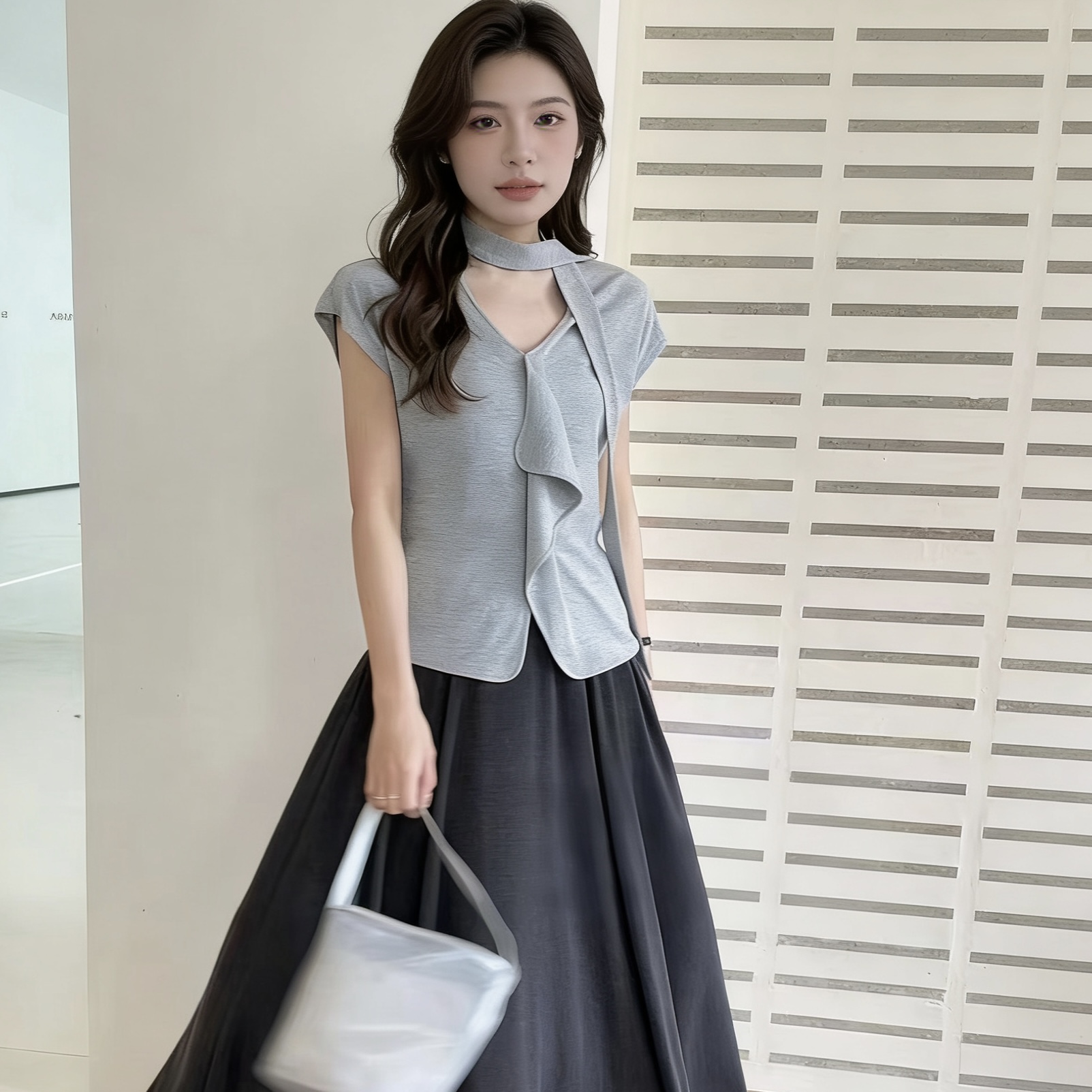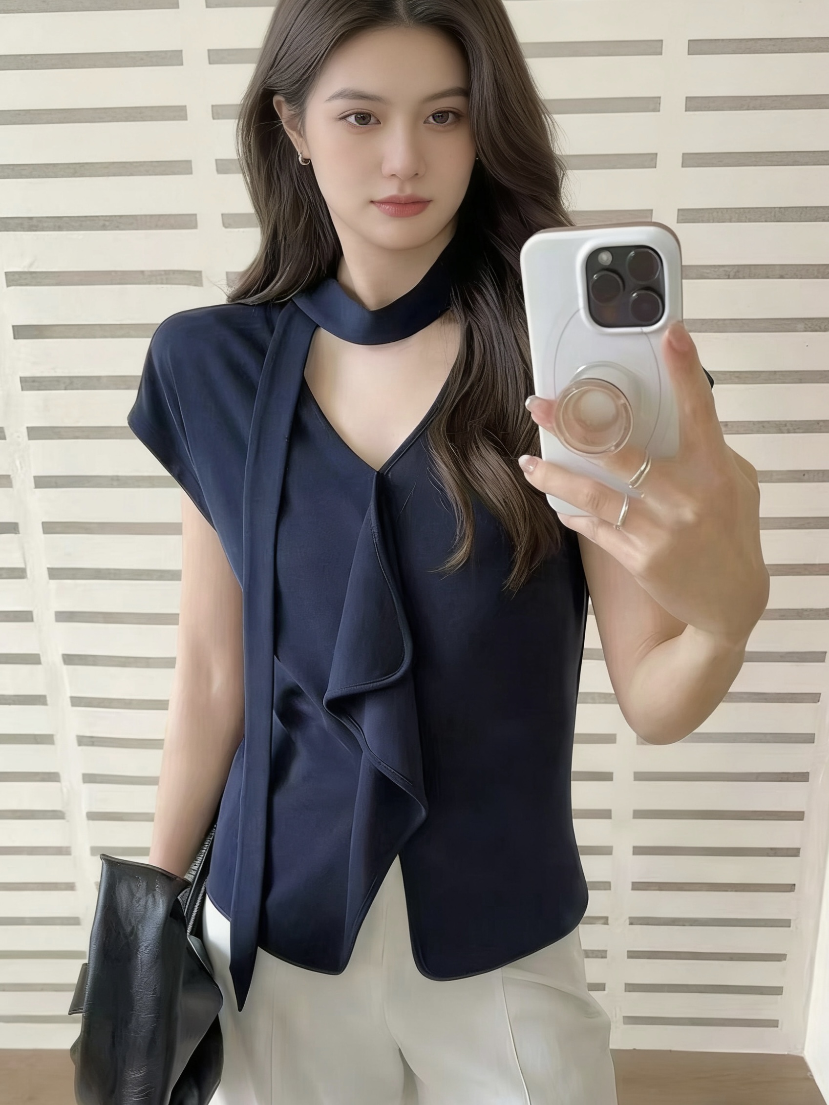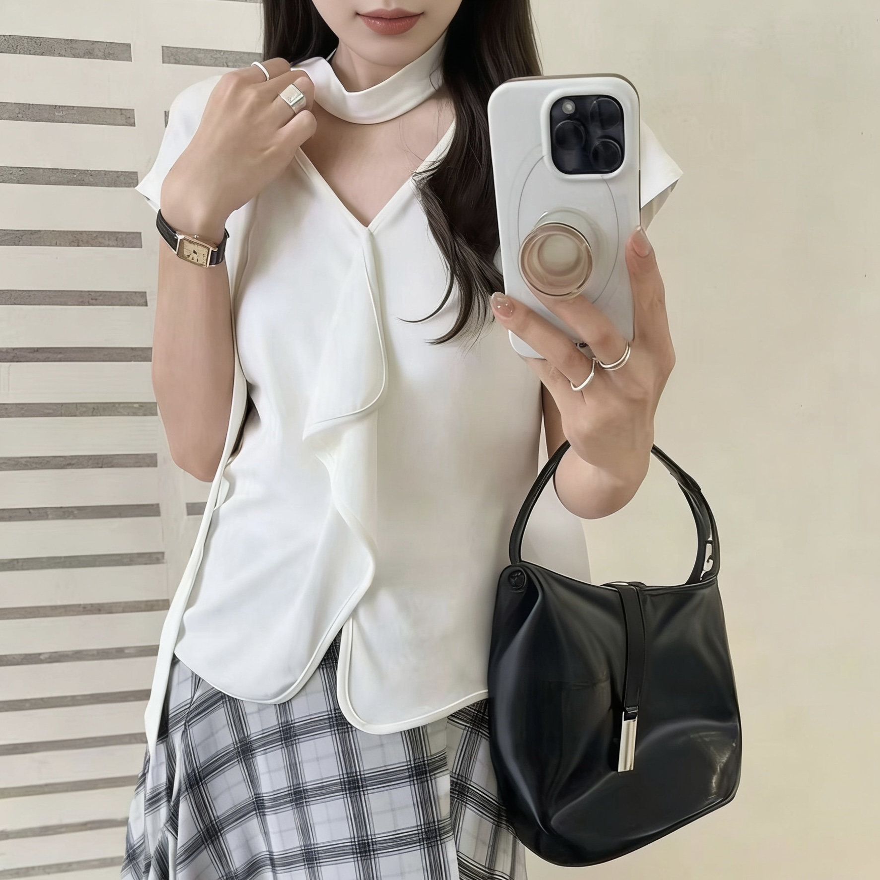 BY12154# 法式通勤风V领荷叶边短袖T恤女白色甜美风春夏显瘦气质上衣 服裝批發女裝批發服飾貨源