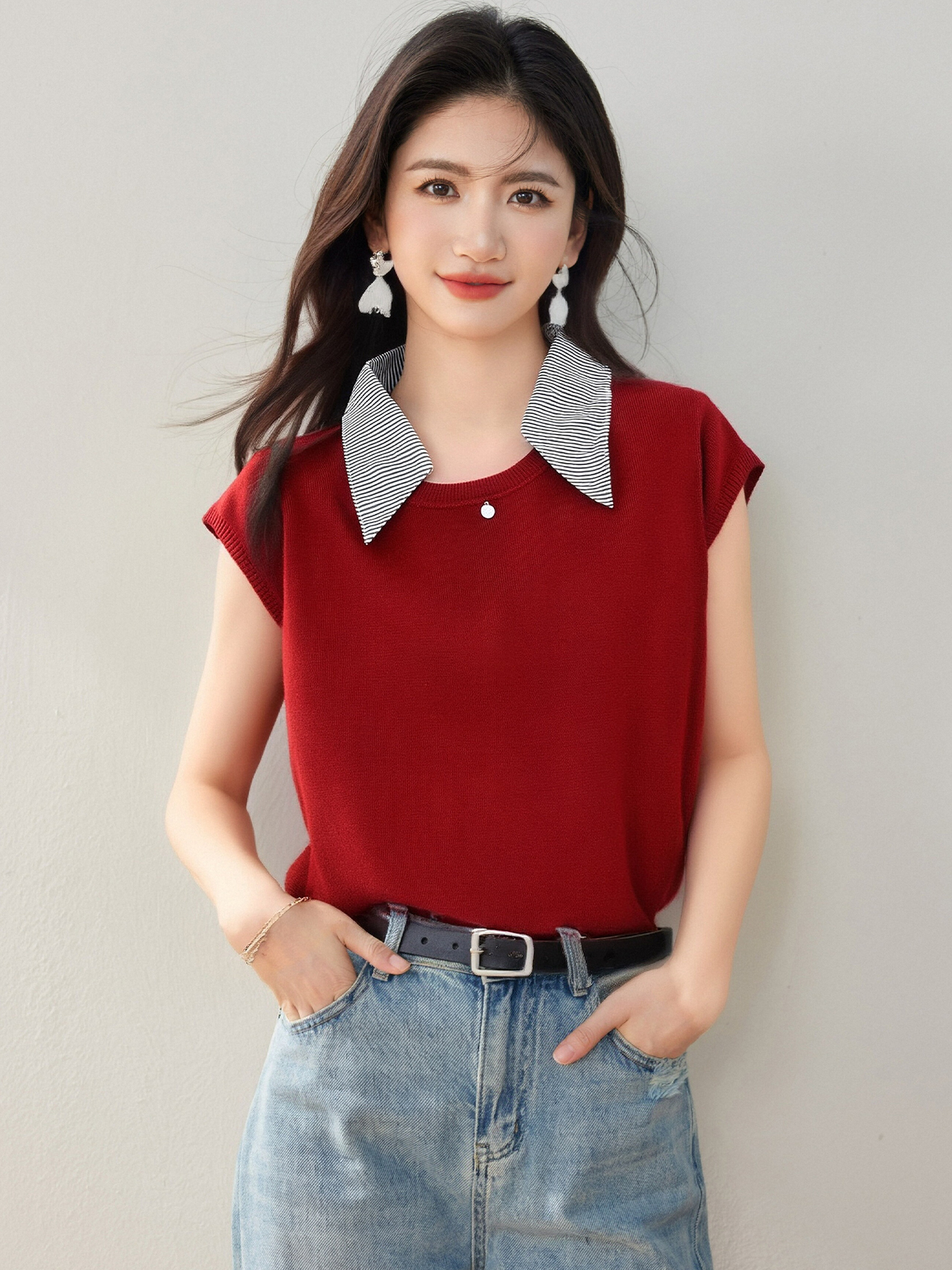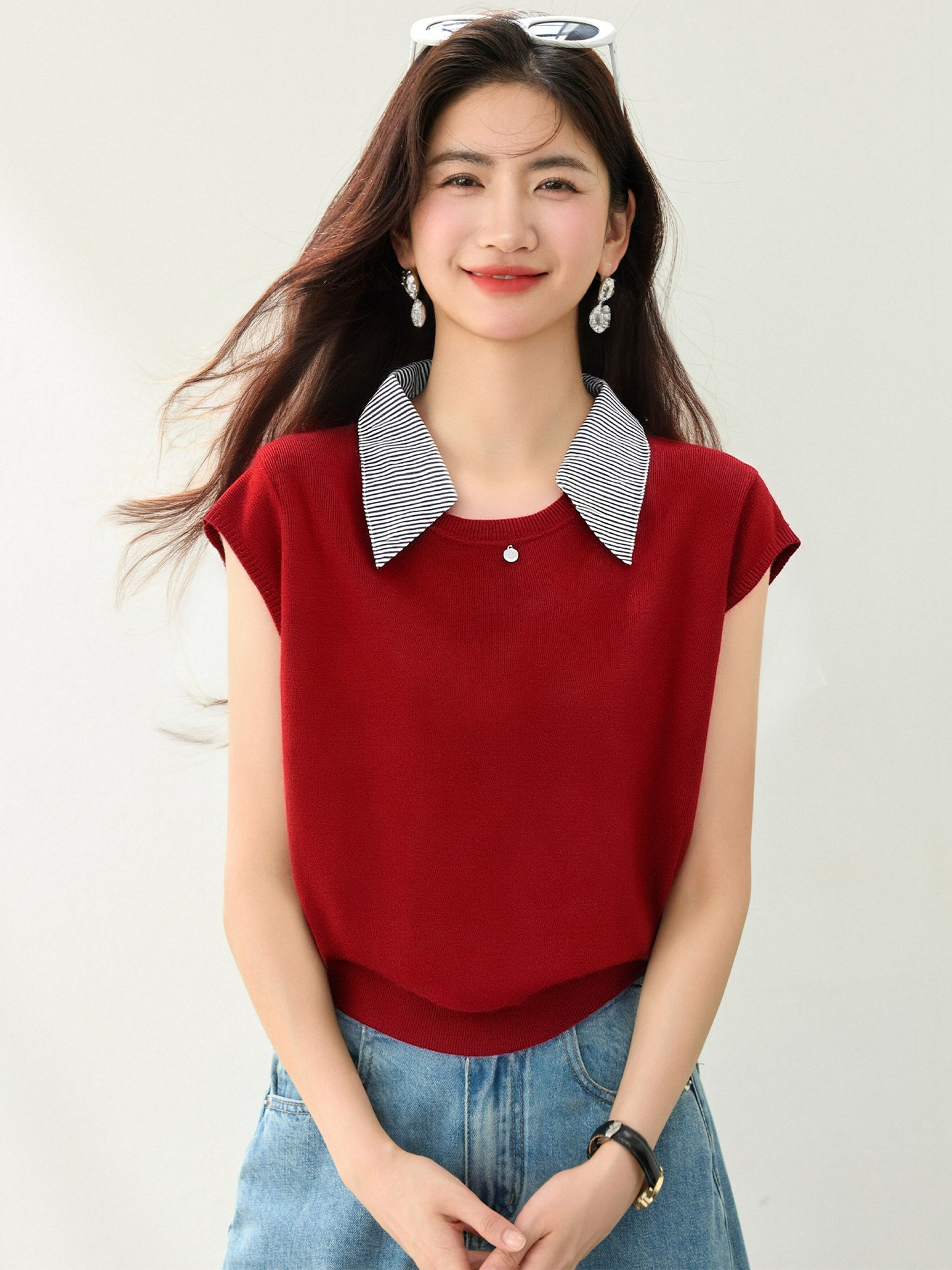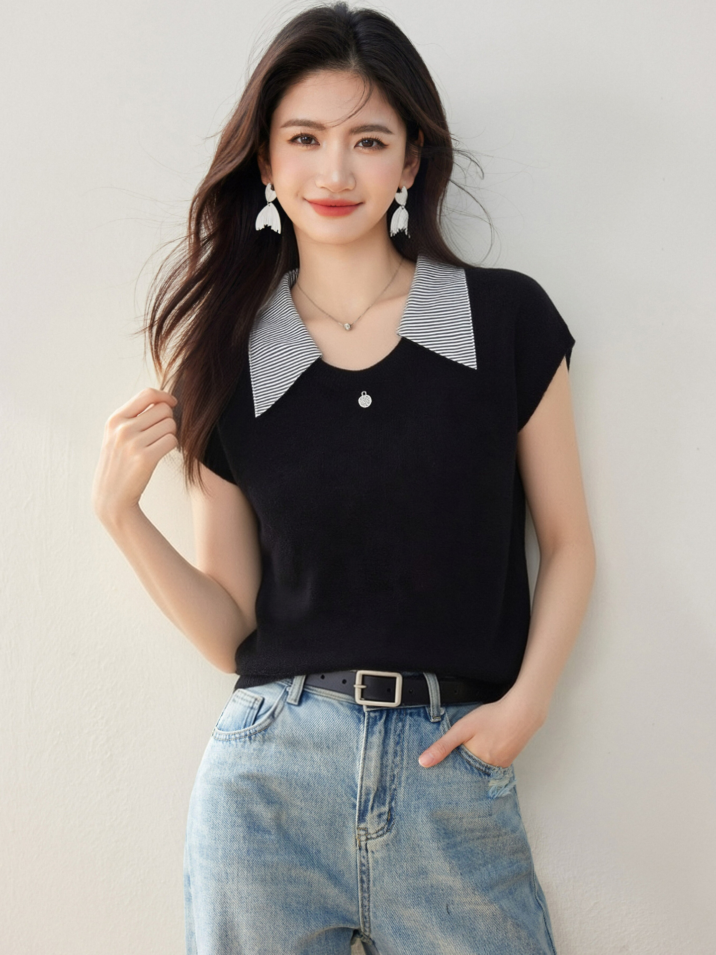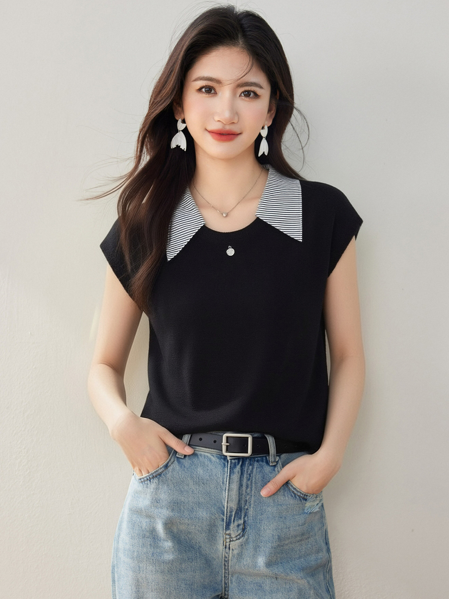 Home > 毛衣、针织衫 > BY12435# 翻领拼色短袖针织衫女夏季新款宽松显瘦百搭毛衣 服裝批發女裝批發服飾貨源