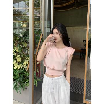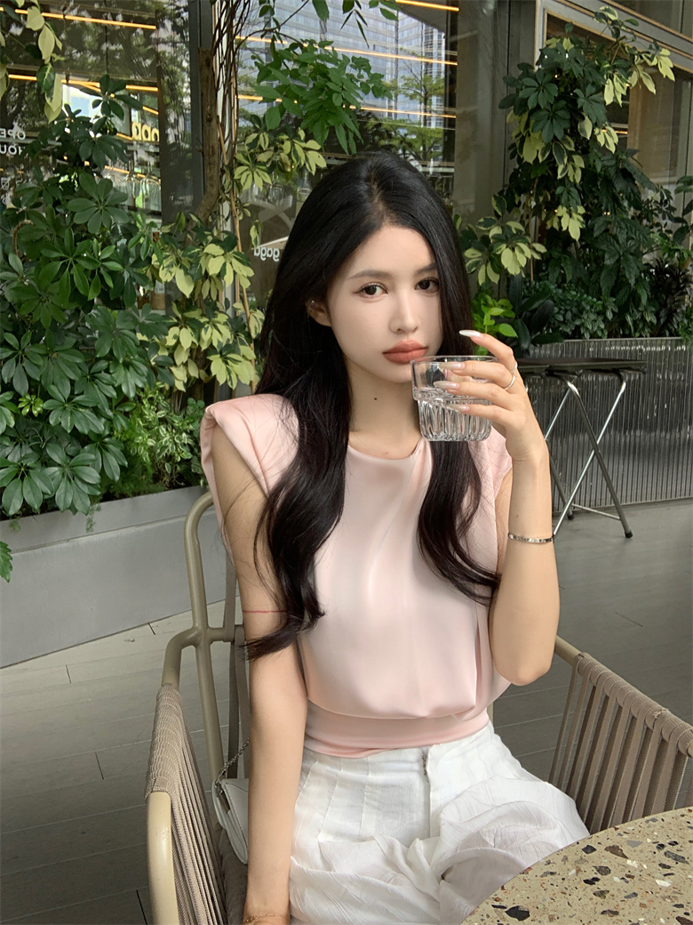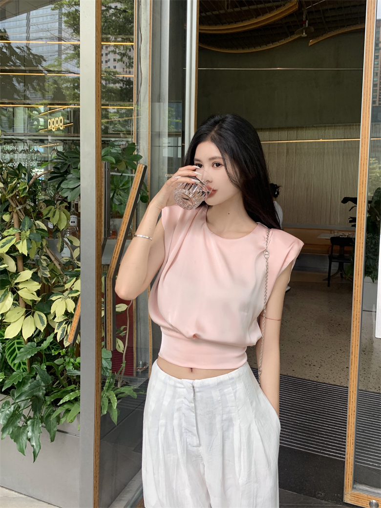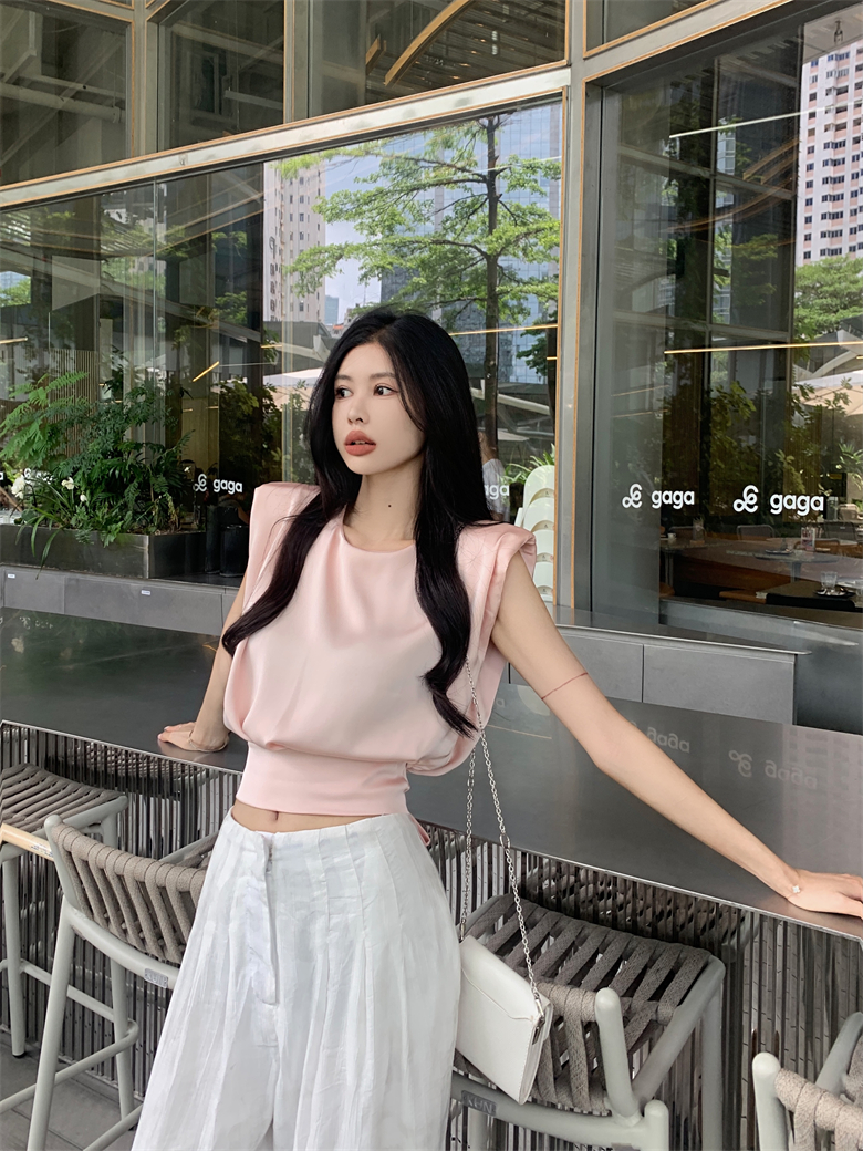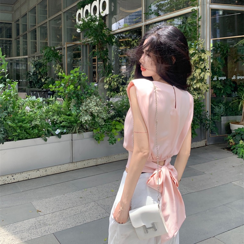 Home > 短袖雪纺衫、衬衫、上衣 > BY12488# 法式气质缎面上衣设计感无袖小众后背绑带蝴蝶结圆领衬衫 服裝批發女裝批發服飾貨源