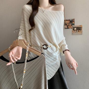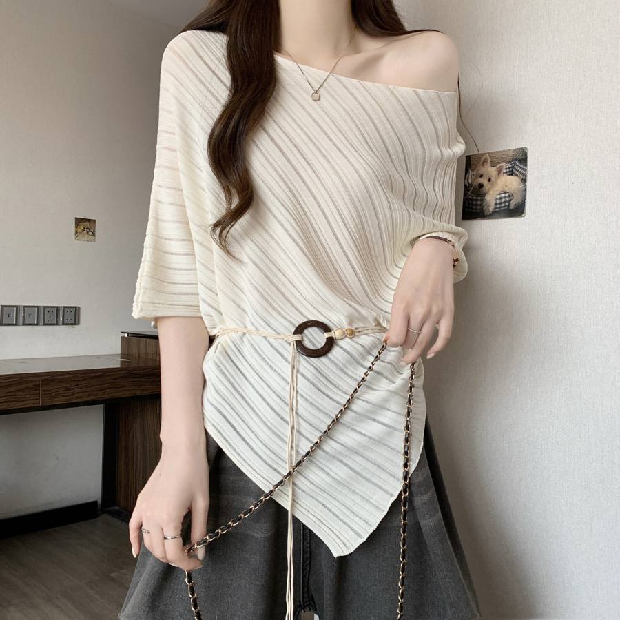 Home > 毛衣、针织衫 > BY12518# 夏季新款一字肩法式腰带冰丝针织衫大码百搭透气显瘦上衣 服裝批發女裝批發服飾貨源