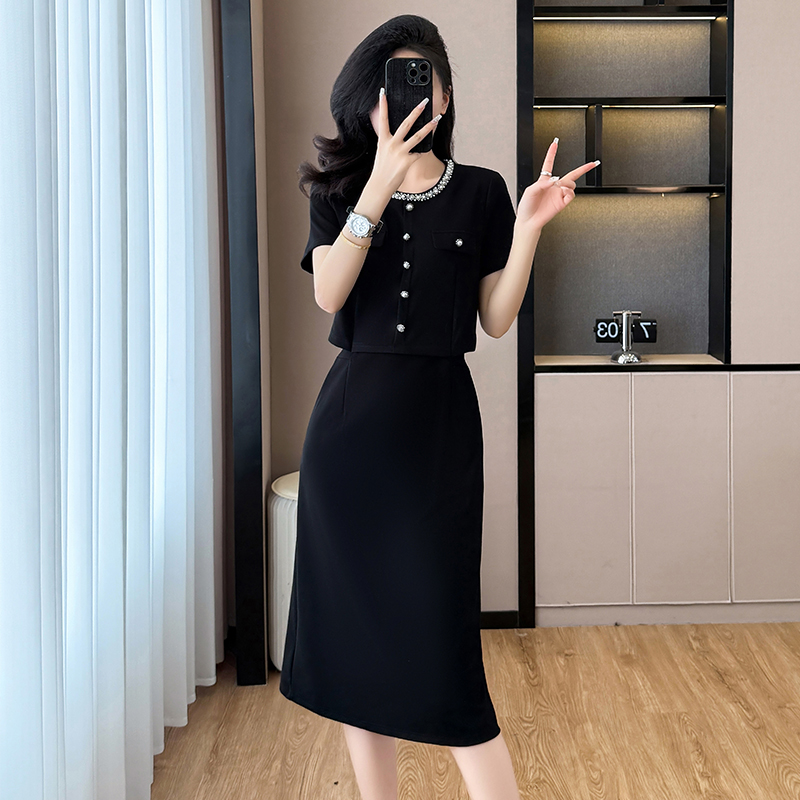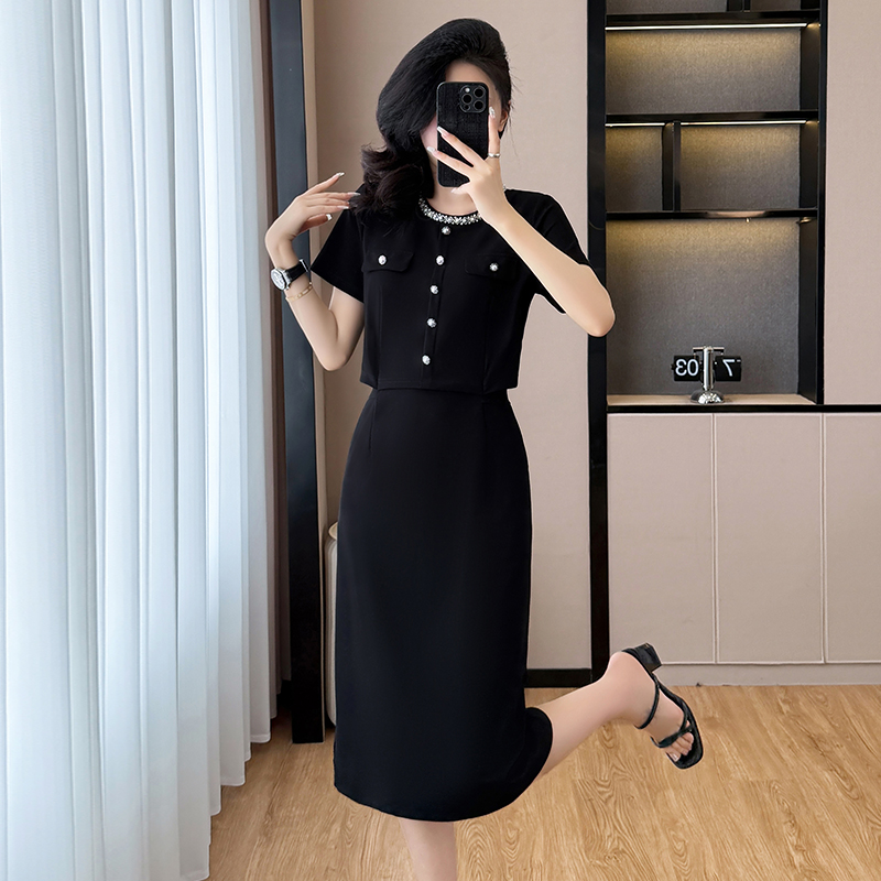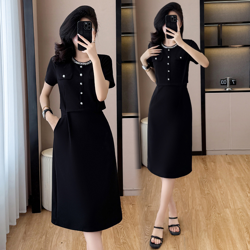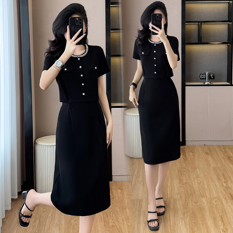 Home > 短袖连衣裙、夜店装 > BY12557# 夏季新款大码女装小香风气质优雅时尚赫本风黑色连衣裙 服裝批發女裝批發服飾貨源
