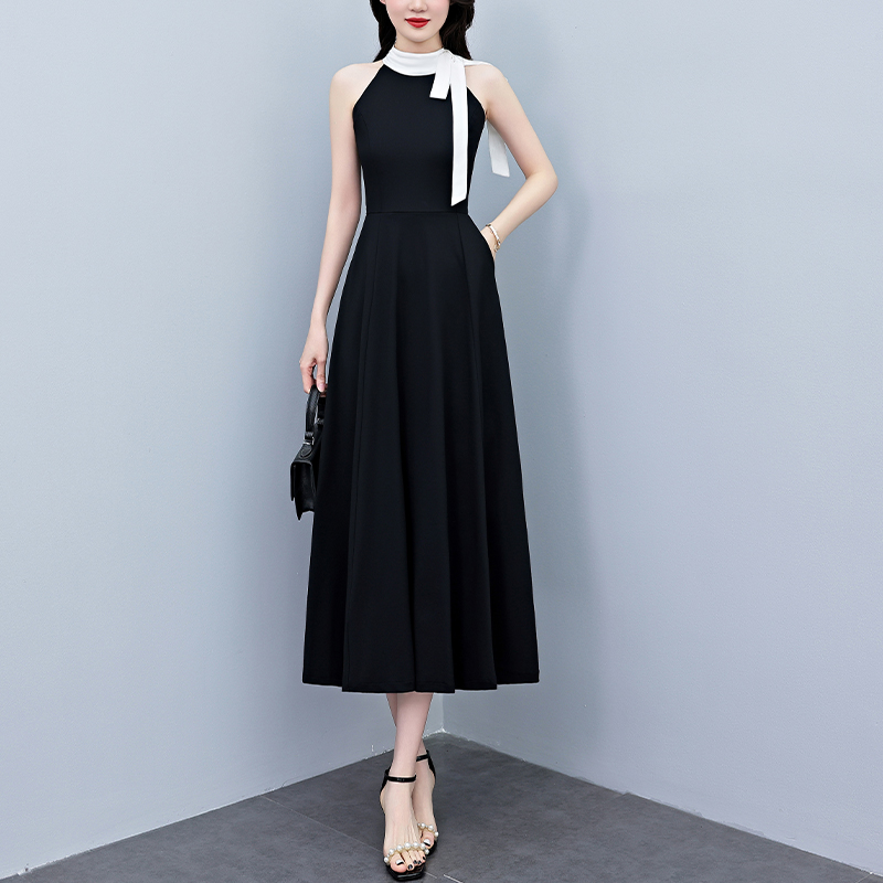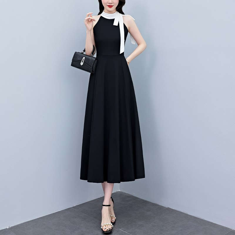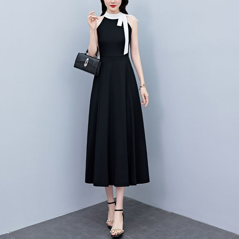 BY12893# 夏季新款赫本风黑色连衣裙女夏长款大码收腰显瘦胖mm小黑裙子 服裝批發女裝批發服飾貨源