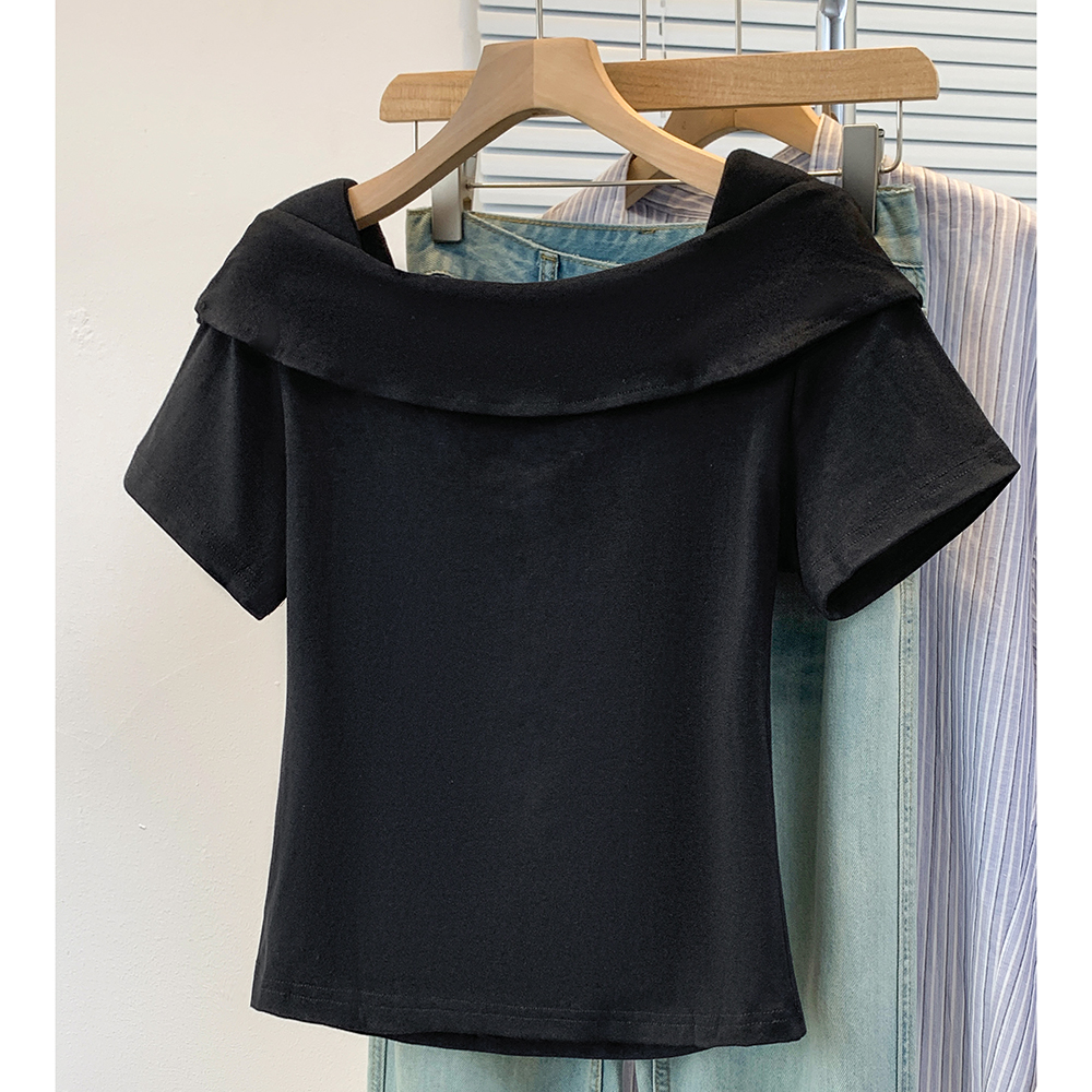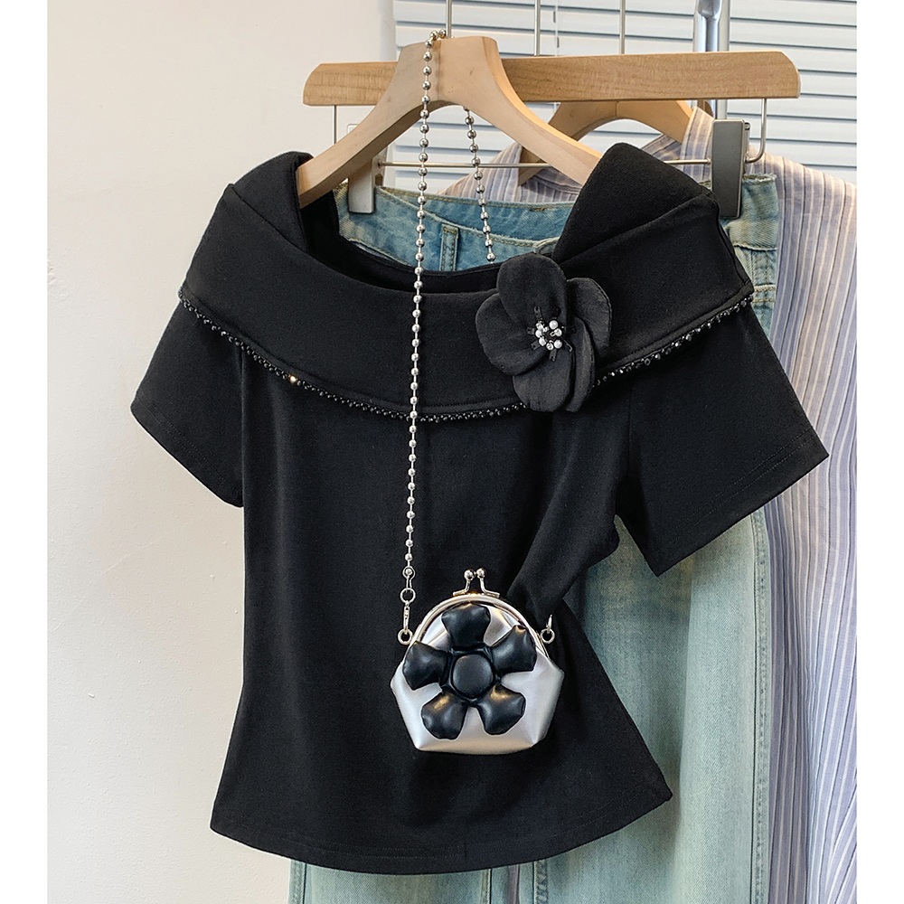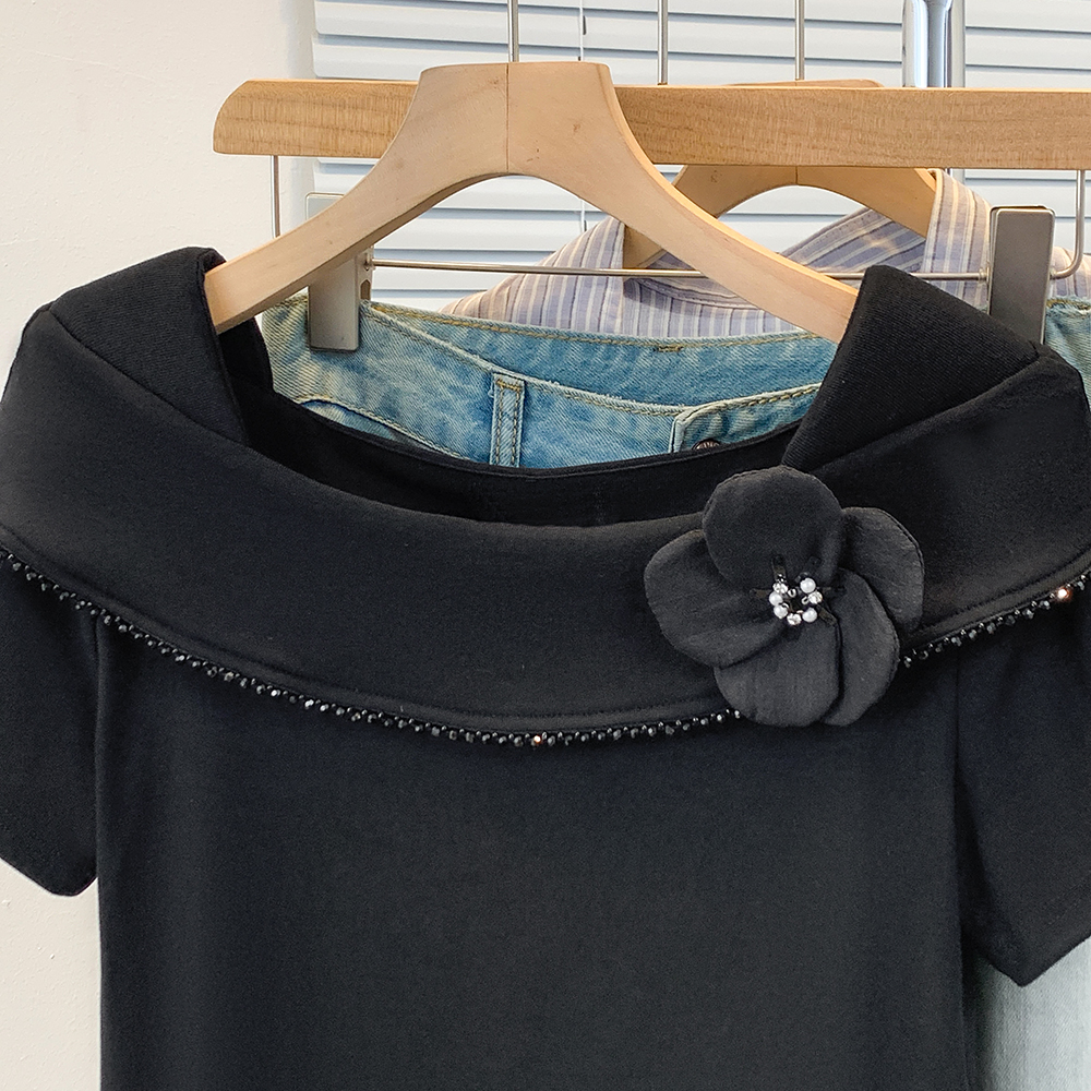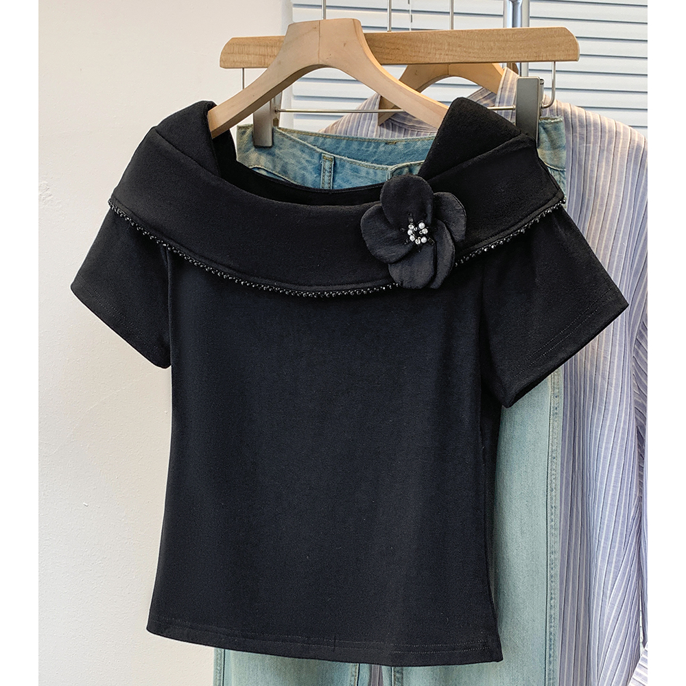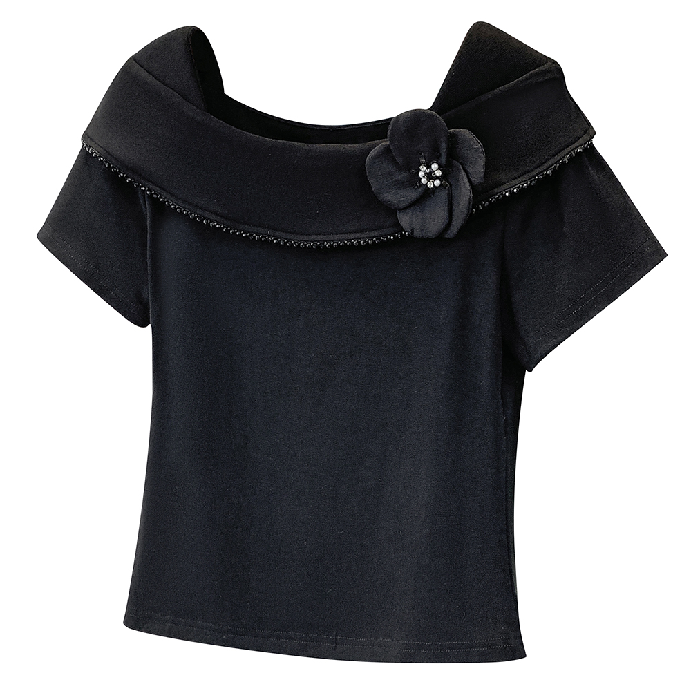 BY12956# 大码韩版时尚方领花朵短袖t恤女夏季气质显瘦荷叶边上衣 服裝批發女裝批發服飾貨源