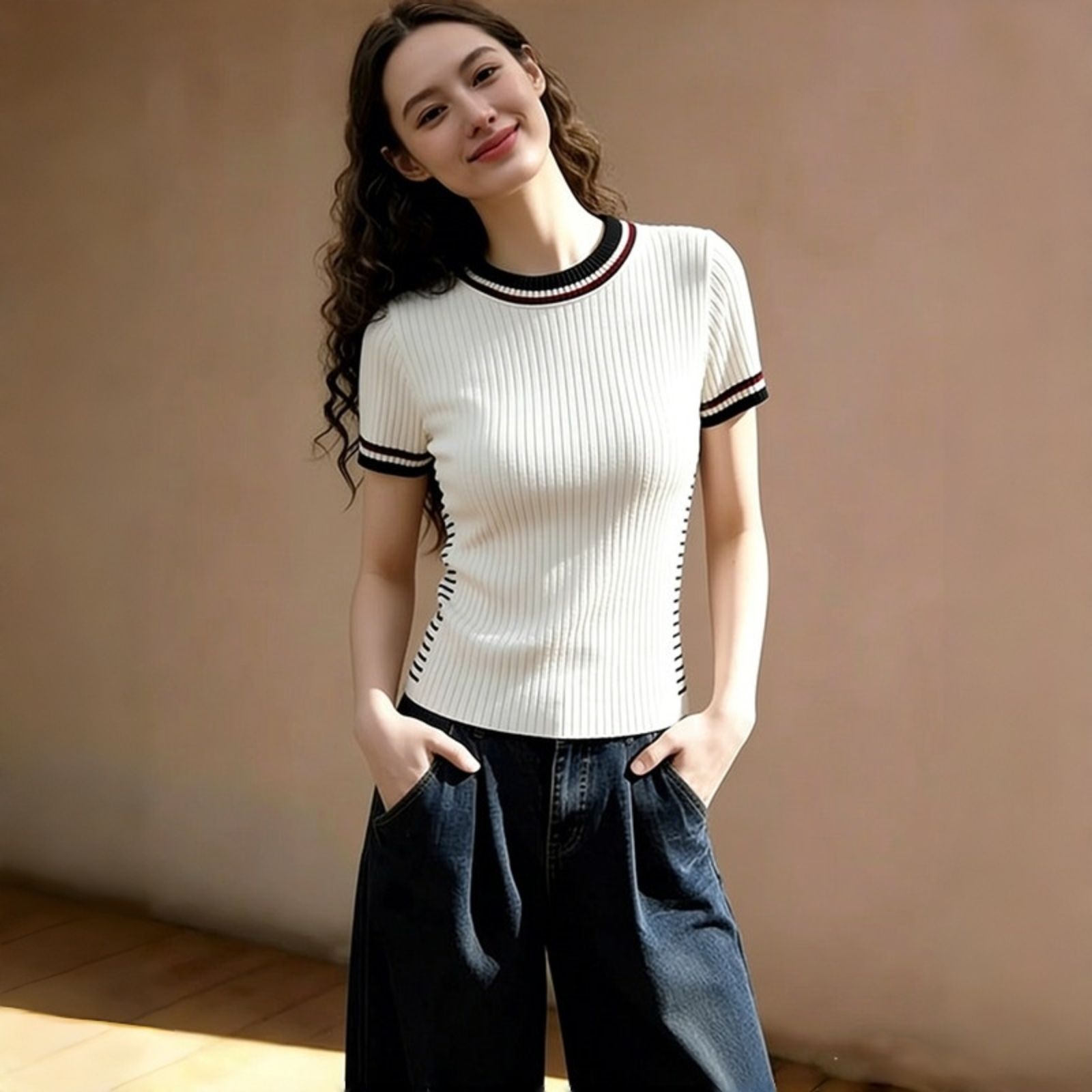 女装圆领短袖春季韩版上衣短款针织t恤杏色上衣 服裝批發女裝批發服飾貨源