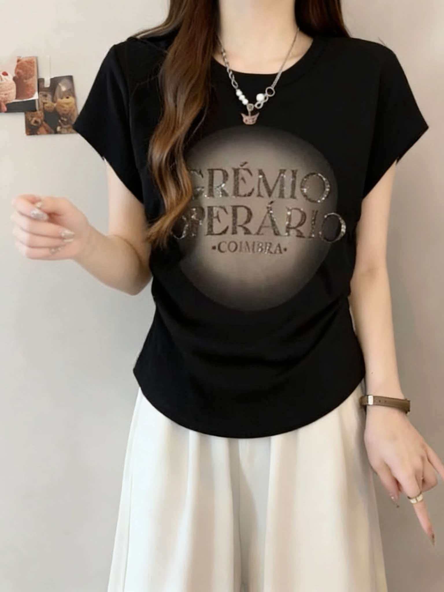 Home > 短袖T恤 > 大码新款黑色褶皱短袖T恤女夏季新款微胖气质显瘦上衣 服裝批發女裝批發服飾貨源