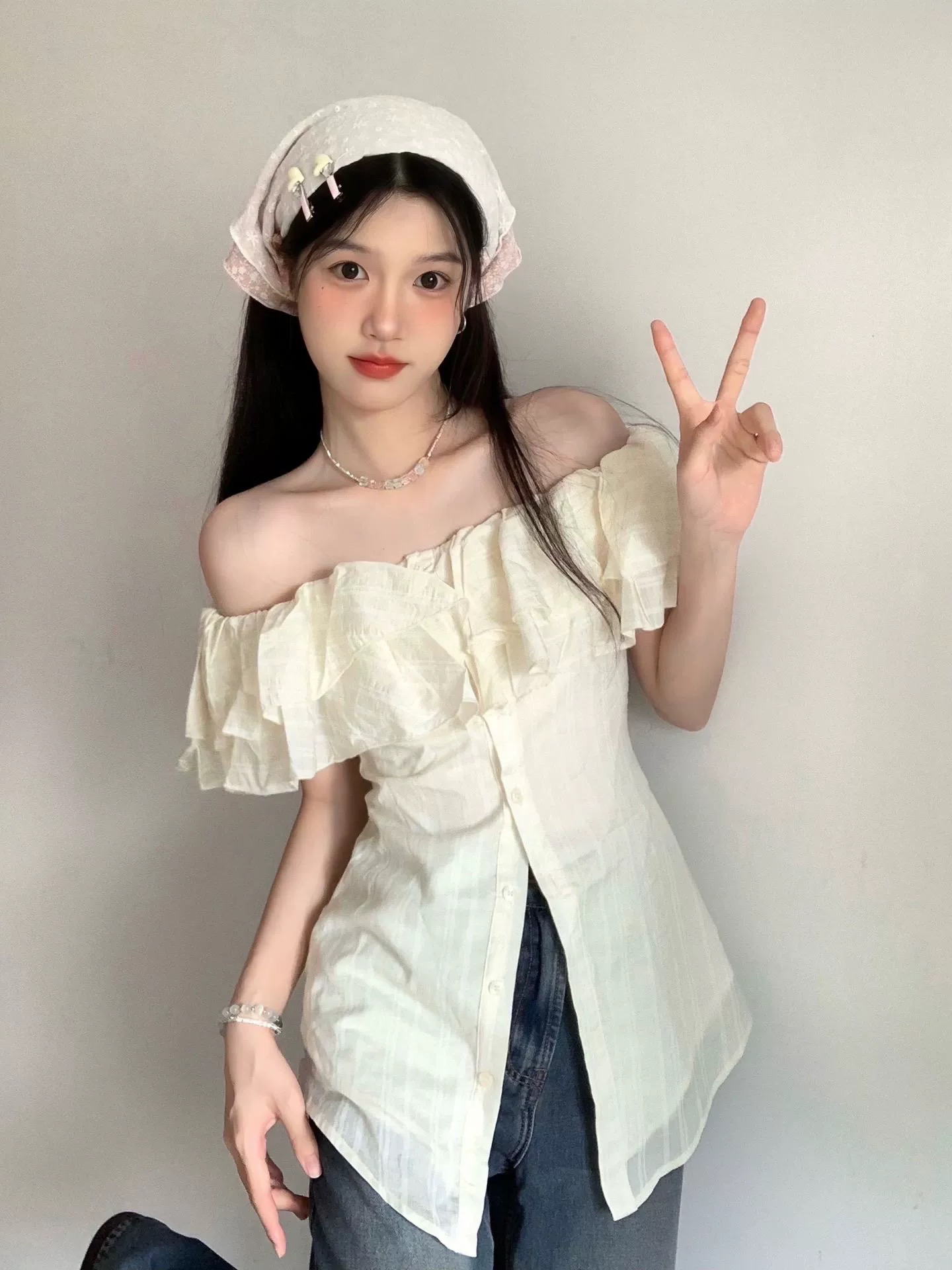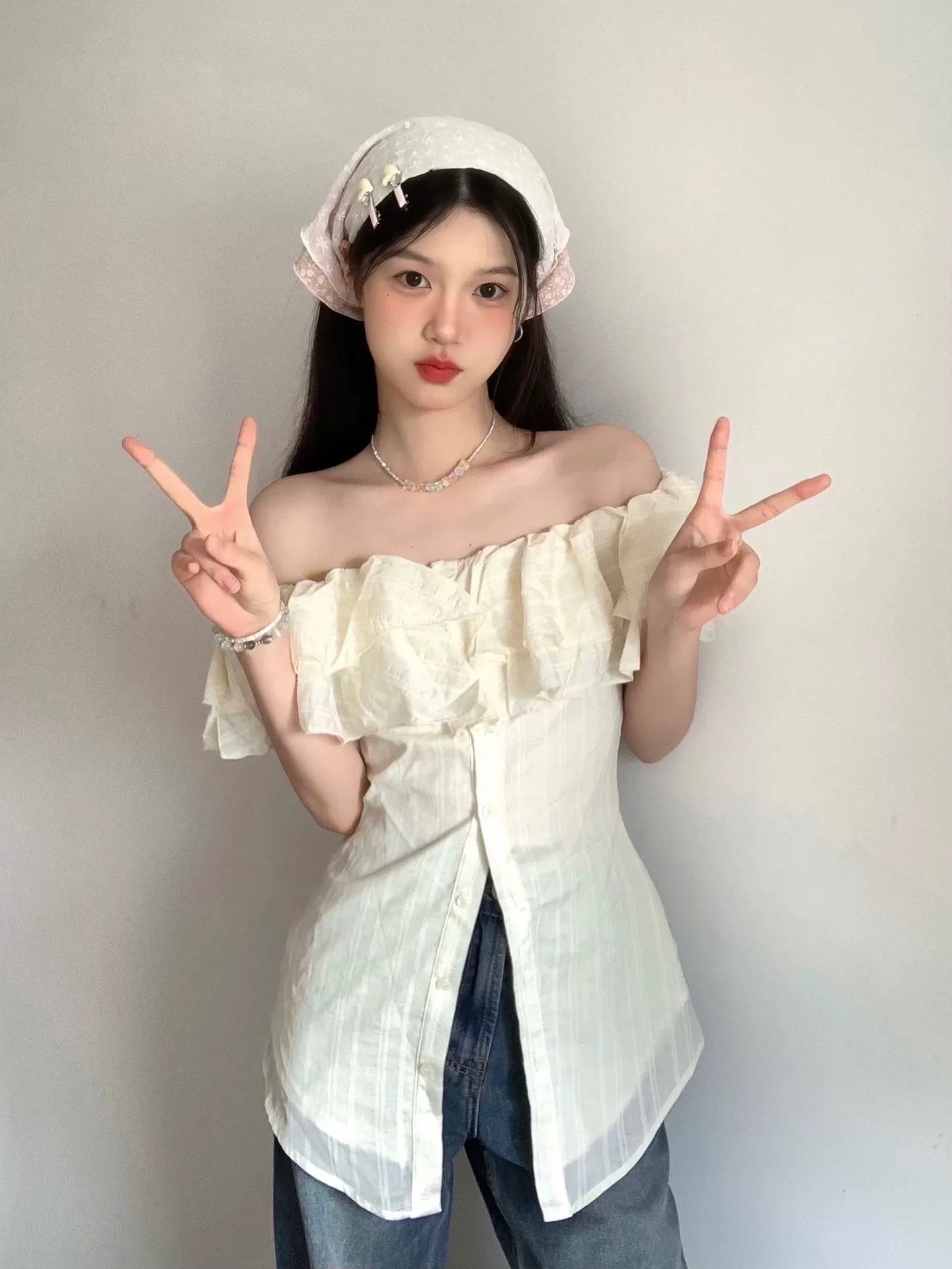 Home > 短袖雪纺衫、衬衫、上衣 > 原版条纹面料有抽筋夏季收腰显瘦掐腰衬衣小众设计感露 服裝批發女裝批發服飾貨源