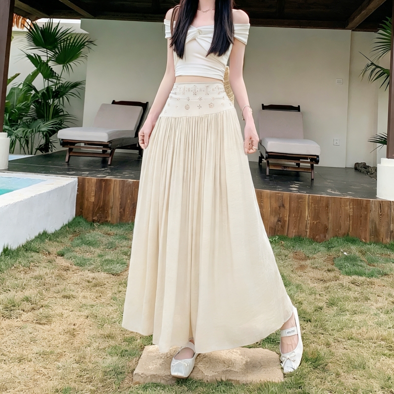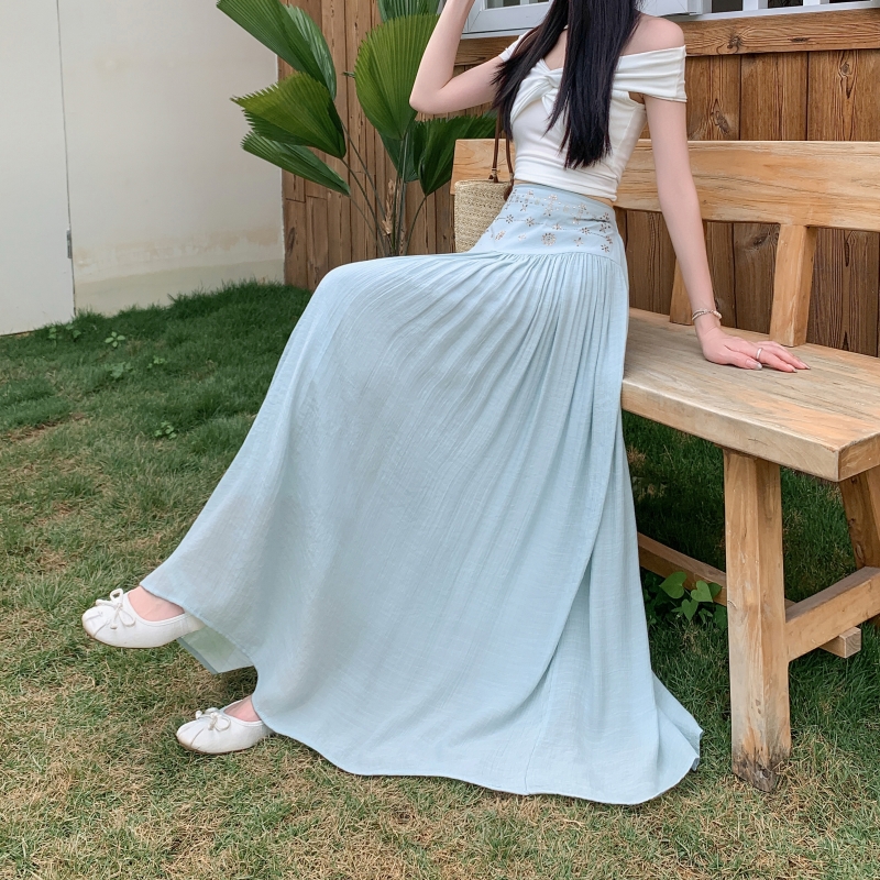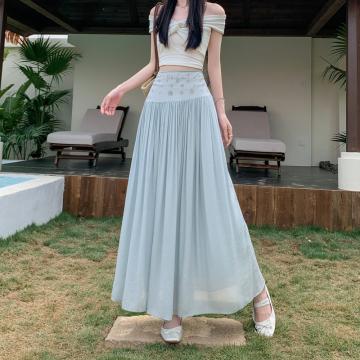 BY14484# 波西米亚棉麻半身裙女春夏薄款复古高腰显瘦垂感A字长裙 服裝批發女裝批發服飾貨源