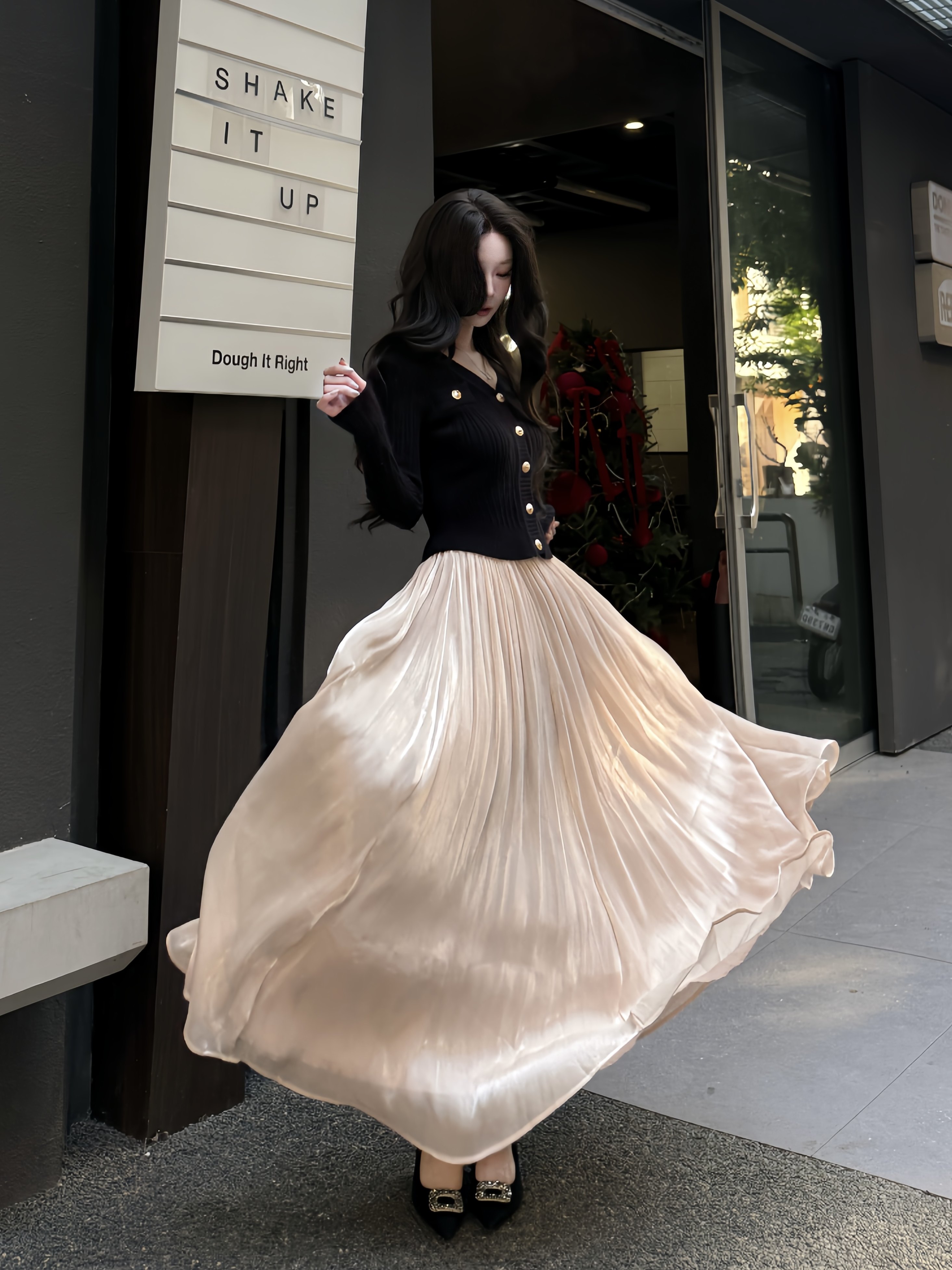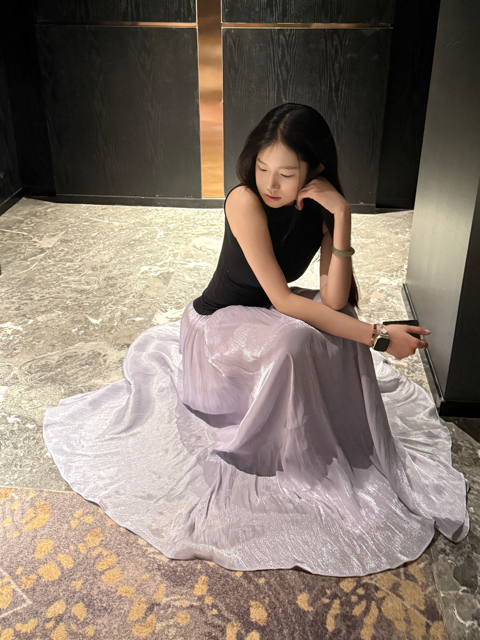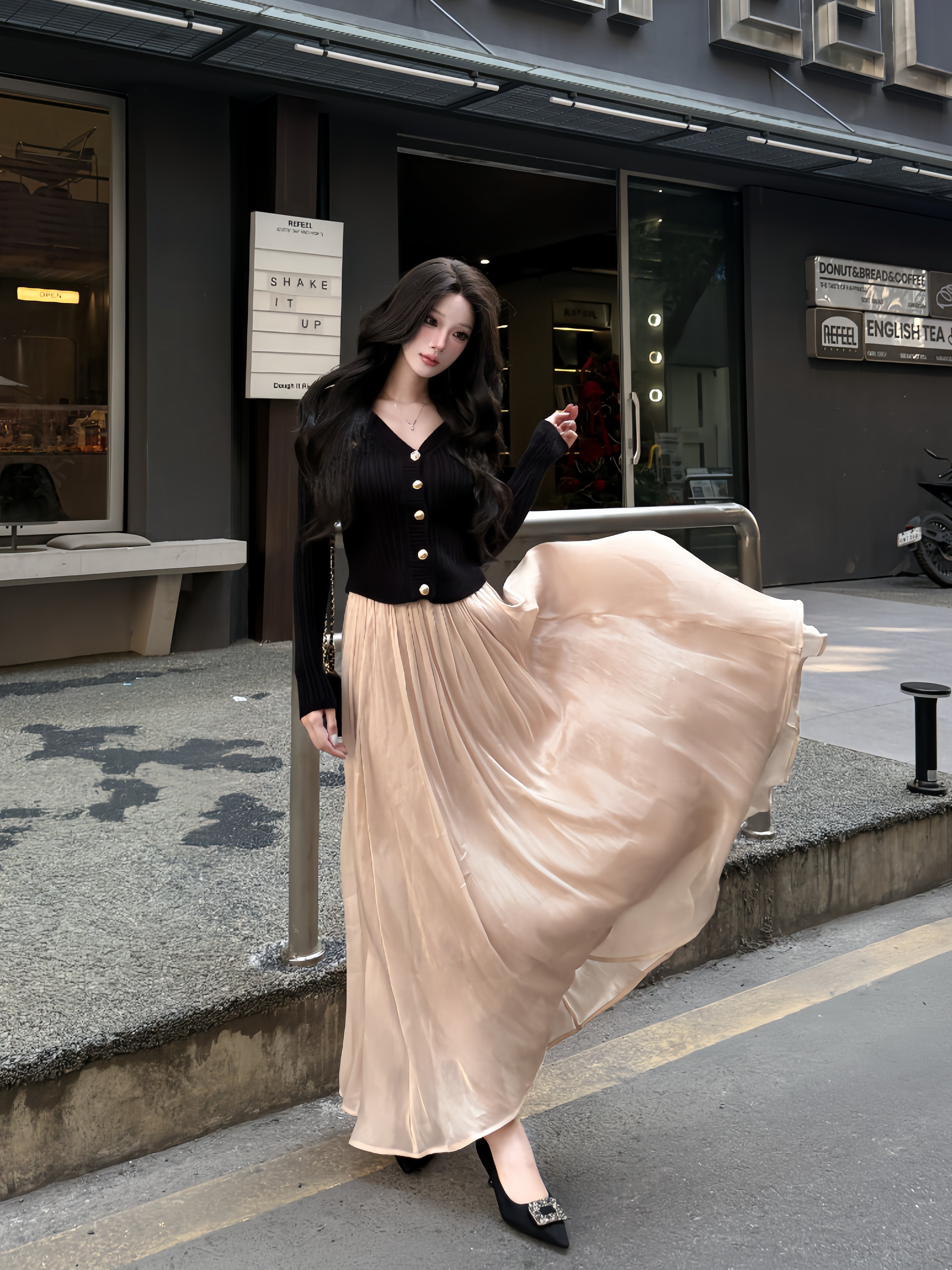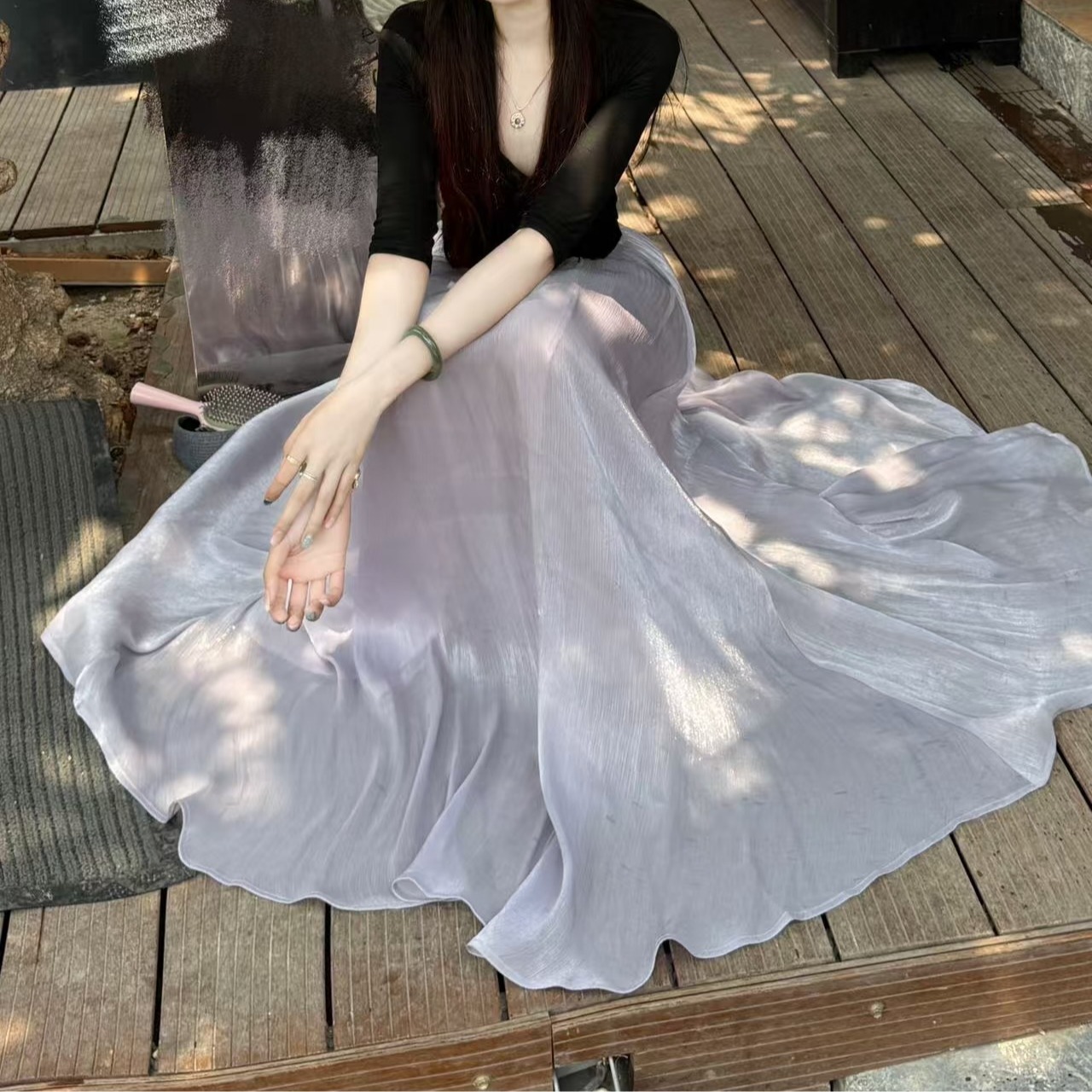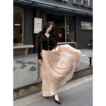 BY14485# 法式高级感流光缎面半身裙女春季新款高腰显瘦大摆a字长裙 服裝批發女裝批發服飾貨源