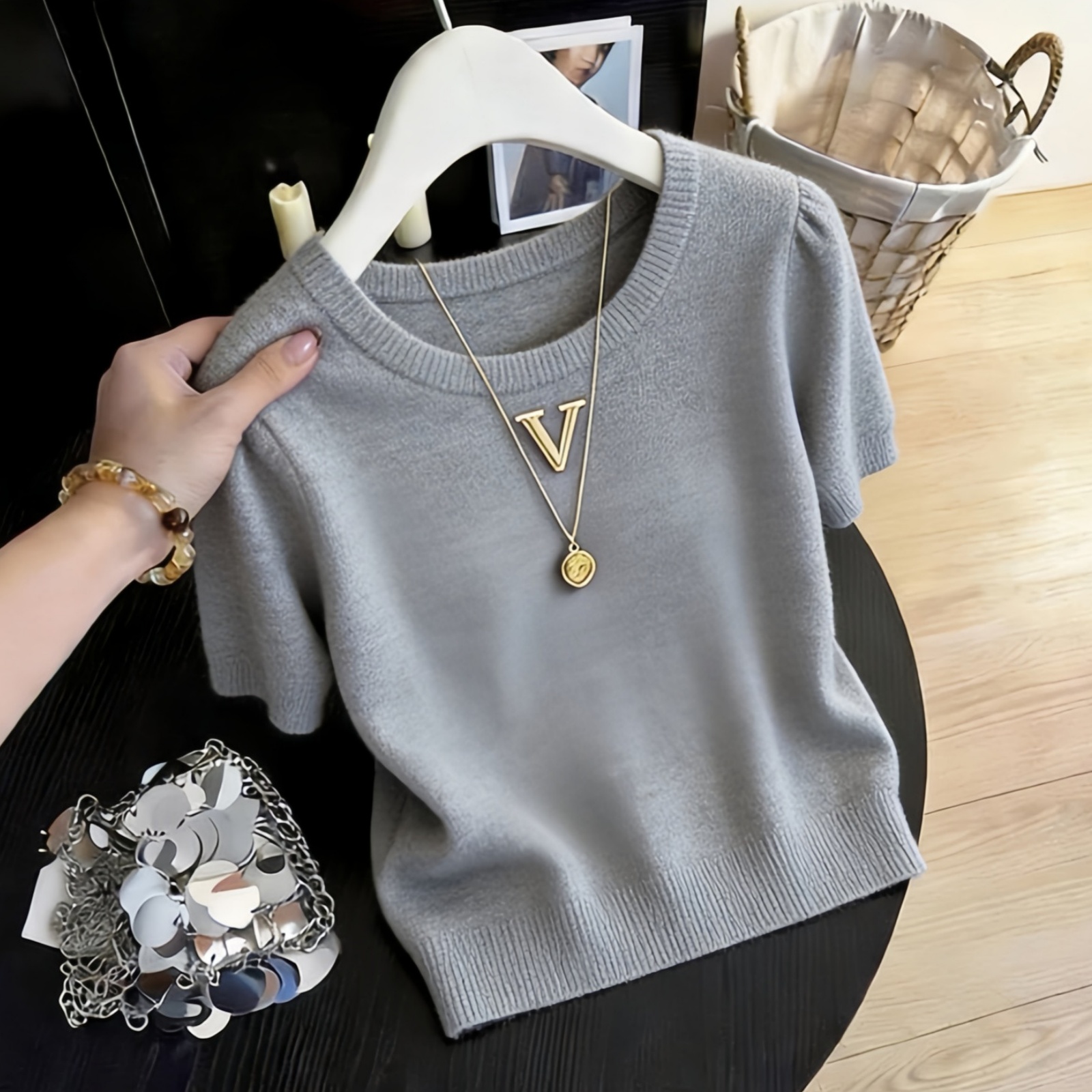 BY14547# 减龄圆领字母正肩短袖针织T恤女春夏新款修身显瘦百搭上衣潮 服裝批發女裝批發服飾貨源