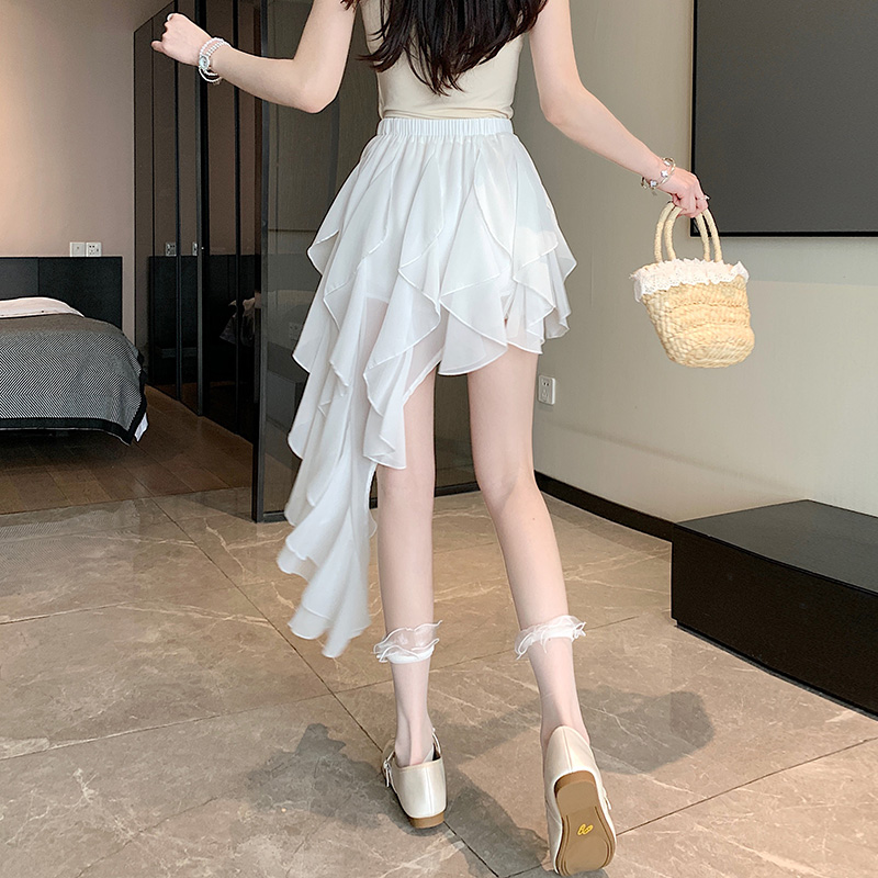 BY14554# 荷叶边不规则蓬蓬半身裙女夏季松紧高腰褶皱A字短裙潮 服裝批發女裝批發服飾貨源