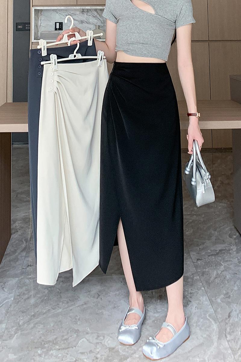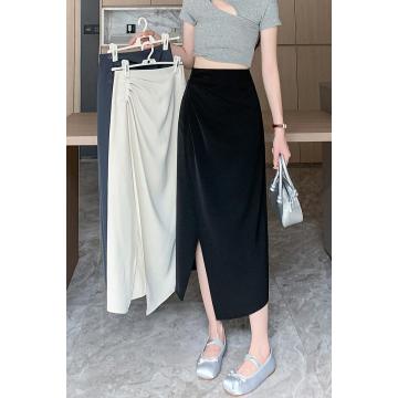 BY14565# 设计感开叉褶皱半身裙女春夏新款不规则中长款显瘦修身裙 服裝批發女裝批發服飾貨源